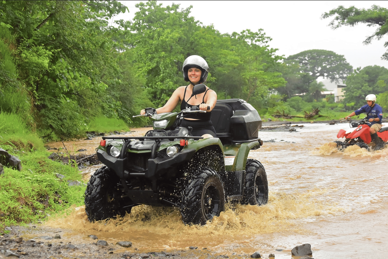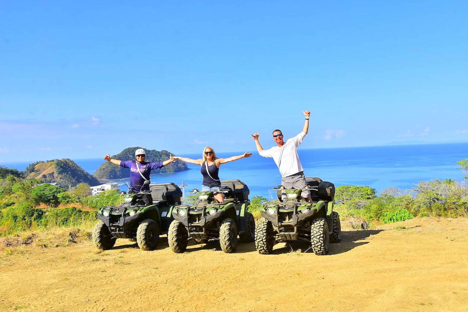 Det sjove starter med en 15 minutter lang traktortur til toppen af bjerget, hvor svævebanen er en del af dit eventyr. Dyk ned gennem regnskoven på en 2-timers bane med 10 kabler og 14 platforme, hvoraf nogle har en fantastisk panoramaudsigt over Stillehavet og Nicoyabugten. Når zip-lining er overstået, er det tid til at få adrenalinen til at pumpe med et ATV-eventyr til et vandfald. Start med en prøvetur på en specialdesignet privat bane. Når du er fortrolig med dit køretøj, fortsætter det sjove på en mudret 2-timers ATV-tur i mere end 300 hektar privat ejendom. Nyd dette sikre eventyr med din guide, mens du kører mod et uberørt privat vandfald, hvor du kan tage en kort vandretur og en svømmetur, inden du vender tilbage til basen. Alternativt kan du opgradere din tur ved at vælge et 3-timers ATV-kursus. Efter zip-lining-delen af turen, som forbliver den samme, kan du tage på et længere ATV-eventyr, som omfatter et besøg ved nogle nærliggende vandfald og en køretur langs en mudret kyststi med mange udsigtspunkter.Includes