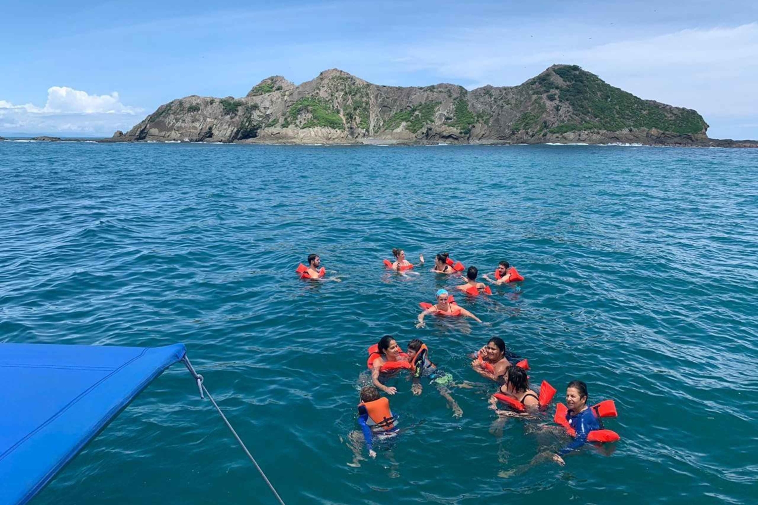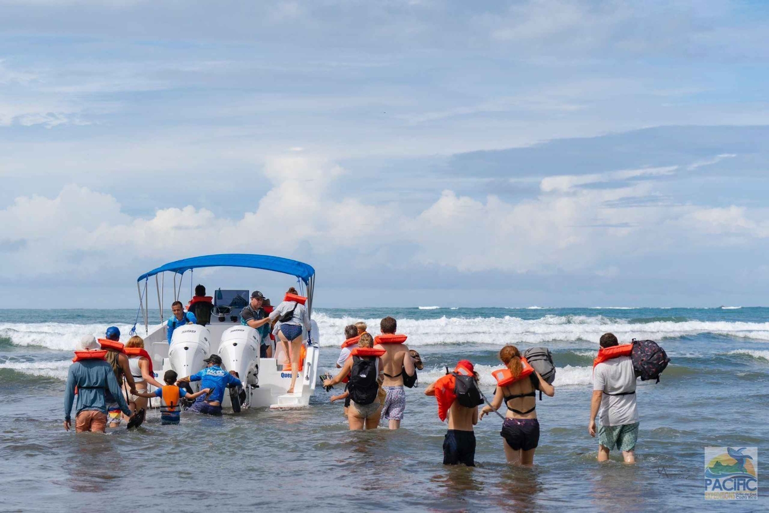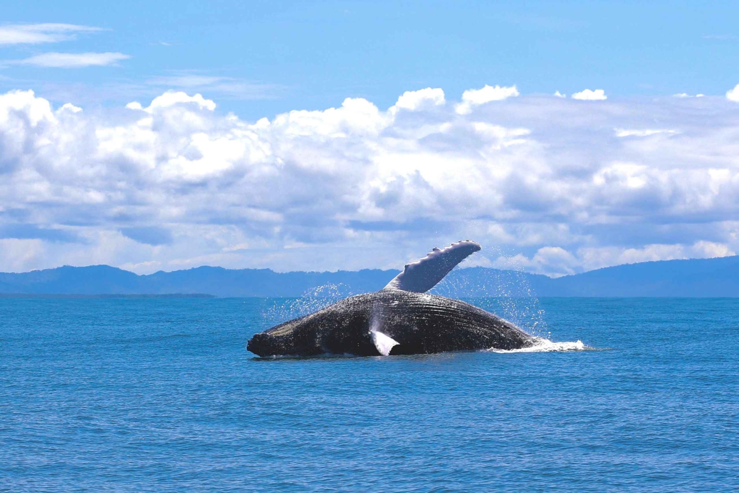 Tag på bådtur for at se pukkelhvaler og delfiner i Marino Ballena Nationalpark. Nyd en bådtur med en guide og se dyrelivet. Start din tur på kontoret. Når du ankommer, kan du nyde lidt kaffe og småkager, mens du venter på, at gruppen bliver samlet. Når gruppen er samlet, kan du følge guiden i din bil til parkeringspladsen (inkluderet i prisen) eller blive kørt, hvis du ikke har en bil. Parkeringspladsen ligger tæt på indgangen til Marino Ballena National Park, hvor I går om bord på båden. Når du er ombord på båden, kan du kigge efter havdyr som pukkelhvaler og delfiner. Nyd panoramaudsigten over de mest interessante punkter i og uden for nationalparken, såsom Ballena Island, Three Sisters og Whale Tail-formationen. Under turen kan du nyde tropiske frugter som vandmelon og ananas og få lidt tid til at svømme.Includes