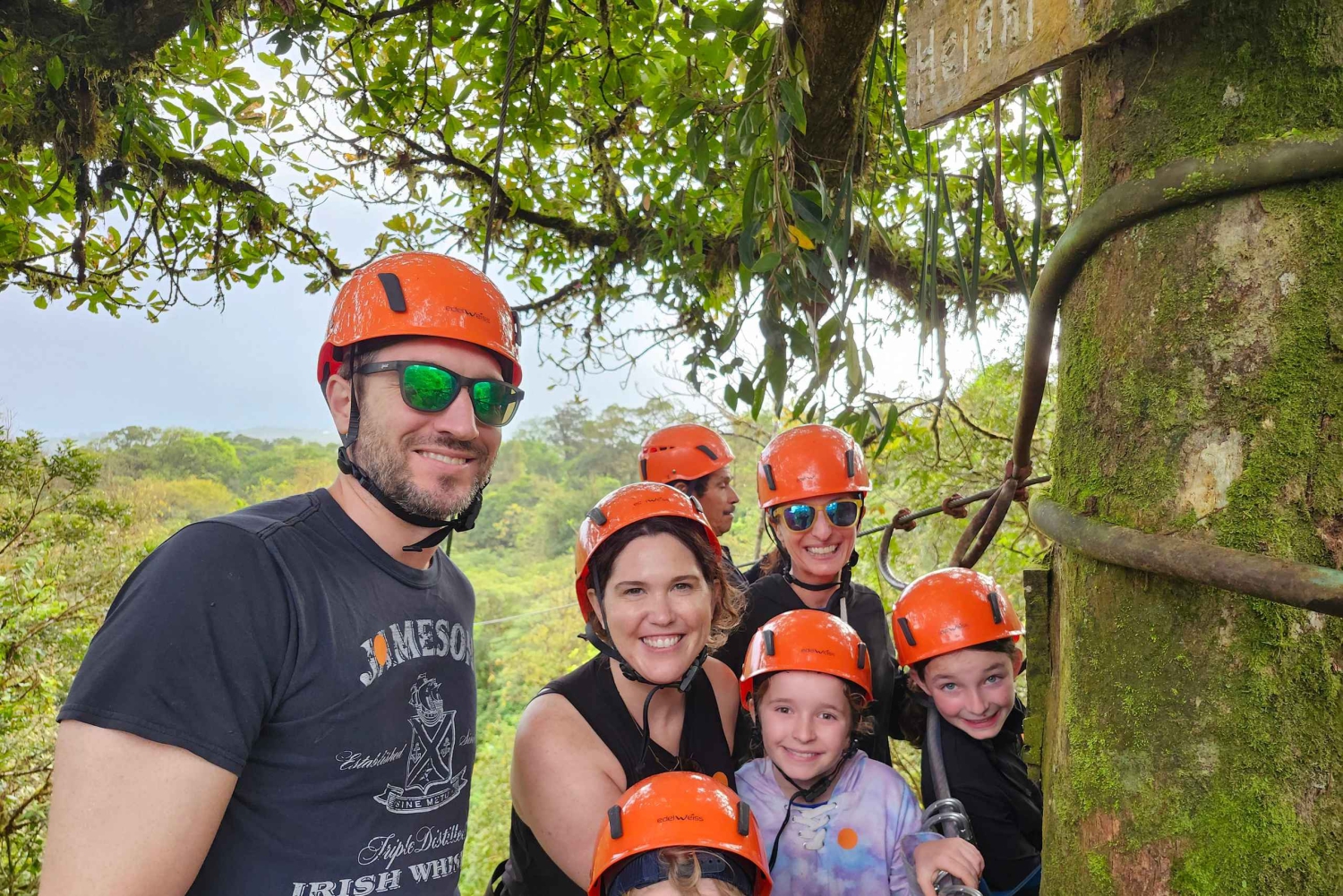 Oplev en spændende tur gennem junglens trækroner på dette fantastiske eventyr. Vi har 9 kabler og 9 platforme, der fører dig højt op i trækronerne. Vores guider vil lede dig på dette fantastiske eventyr, og du kan måske endda se en abe eller to hænge ud. Ingen erfaring nødvendig. Vi starter med en lærerig naturvandring gennem vores haver og ejendom til vores første platform. Vores Zipline Adventure er familievenlig og velegnet til begyndere, øvede og avancerede personer, der er på udkig efter en fantastisk oplevelse. Gode sko (ingen åbne sko eller sandaler), kameratelefon og insektspray anbefales.Includes
