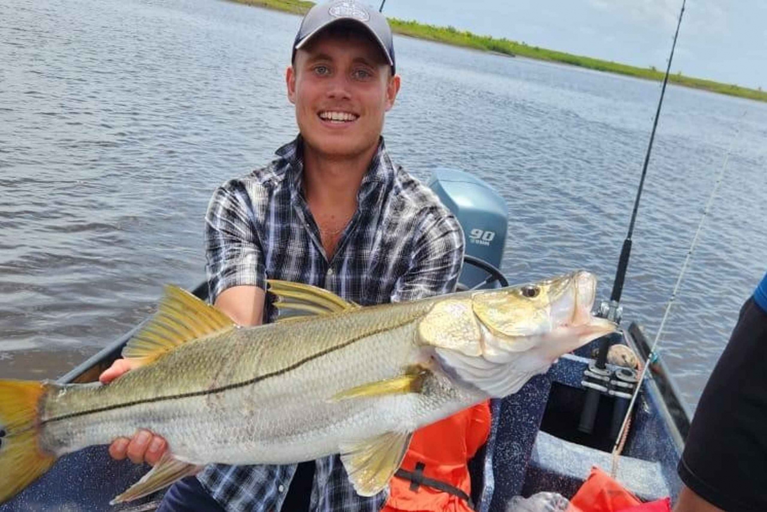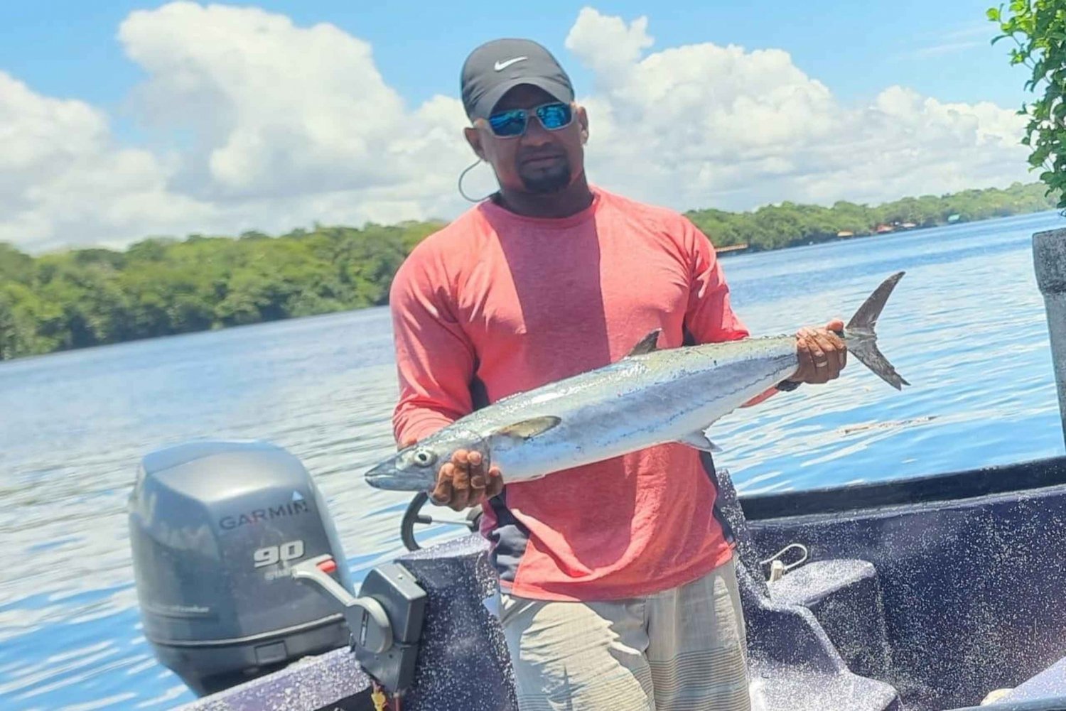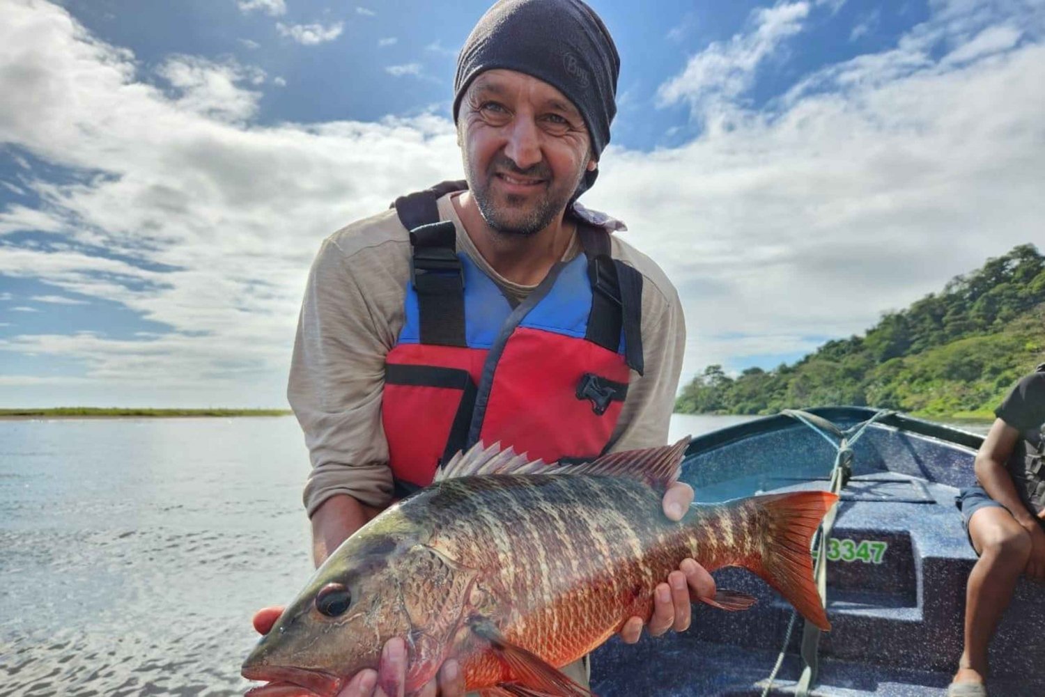Angeltour am Meer oder in den Lagunen von Tortuguero, mindestens 2 Stunden und aufwärts und du zahlst für das Boot, 3 Personen Angeln wird empfohlen.
