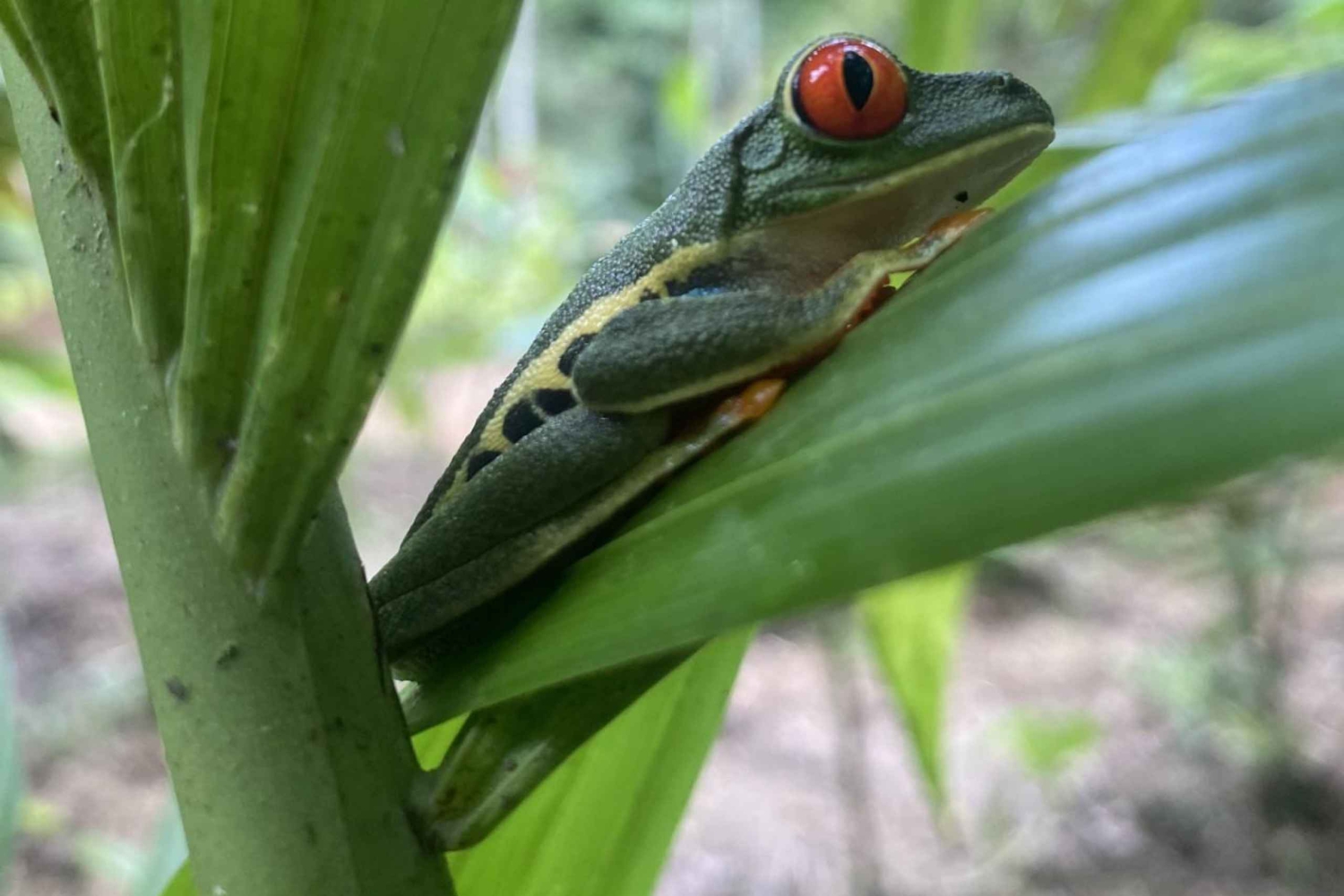 Ven a explorar el boque lluvioso y a descubrir toda la flora y la fauna que habita en él. Disfruta de una caminata y un recorrido en balsa guiado con un guía apasionado por la naturaleza que te hará vivir la mejor experiencia de tu vida en el verdadero bosque lluvioso además podrán observar el comportamiento de una gran variedad de especies de animales en su habitad natural como, por ejemplo: perezosos, aves, monos, ranas, serpientes, tortugas, peces entre muchas otras especies de animales. Ven y vive el Pura VidaIncludes