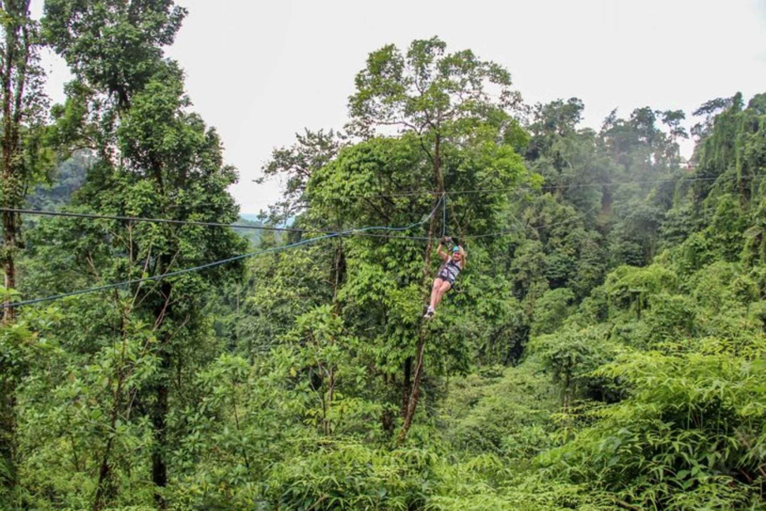 Embárcate en una estimulante aventura de día completo en las exuberantes selvas tropicales de Manuel Antonio o Quepos. Tu viaje comienza con una cómoda recogida en tu hotel o casa, seguida de un pintoresco viaje de 35 minutos hasta el parque de aventuras. A tu llegada, te registrarás en la oficina antes de dirigirte al recinto principal. En el parque de aventuras, cambia a un vehículo 4x4 que te llevará al campamento base. Aquí, tu guía profesional te proporcionará todo el equipo necesario, incluidos arneses y cascos, y te informará sobre las instrucciones de seguridad. La aventura comienza con una serie de tirolinas de alto vuelo que ofrecen impresionantes vistas de la selva tropical circundante. A continuación, desafíate con emocionantes rápeles y el estimulante columpio de Tarzán. Mientras recorres el circuito, disfruta de un paseo por la naturaleza que te lleva a impresionantes pozas en cascada, perfectas para un refrescante chapuzón. A mitad del recorrido, tómate un descanso para saborear un delicioso tentempié. Tras completar el recorrido, regresa al campamento base, donde te espera un abundante almuerzo. Deléitate con los sabores de la cocina local mientras cuentas tus aventuras a tus compañeros. La excursión concluye con un cómodo viaje de vuelta a tu hotel, dejándote recuerdos inolvidables de tu aventura en la selva tropical.Includes