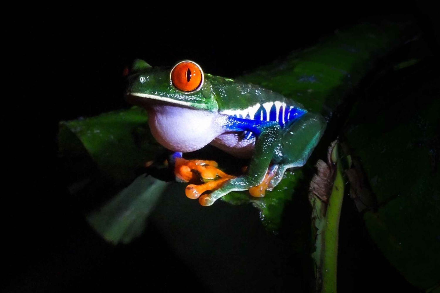 Embárcate en una aventura nocturna única en las faldas del Volcán Tenorio. Durante una hora y media, te invitamos a explorar la naturaleza en su máximo esplendor. Acompañado por guías expertos, descubrirás la fauna nocturna local, desde reptiles y anfibios hasta insectos fascinantes, todo en su hábitat natural. La caminata es cuidadosamente diseñada para ofrecerte una experiencia segura y enriquecedora. A medida que avanzas por senderos rodeados de vegetación exuberante, aprenderás sobre la biodiversidad que habita en esta región, y nuestros guías compartirán datos interesantes y curiosidades sobre cada especie que encuentres. Esta experiencia no solo te permite conectar con la naturaleza, sino también apreciar la belleza y el misterio de la vida silvestre nocturna. Una oportunidad perfecta para los amantes de la naturaleza y la aventura.Includes