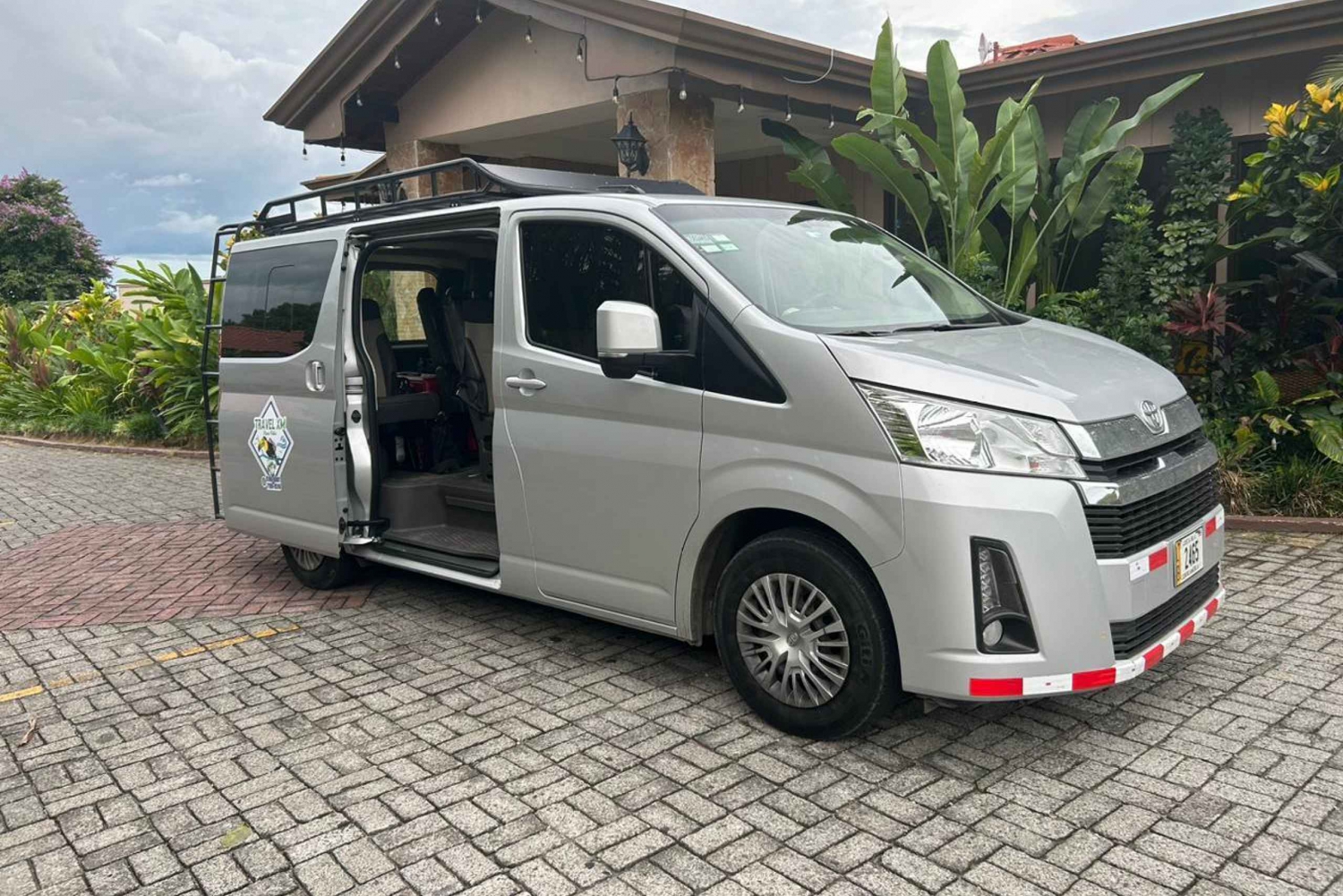 Tuanis Shuttles pone a su disposición una opción de transporte privado, el cual es muy seguro y cómodo, desde La fortuna con destino a La Pavona donde puedes tomar el bote para ir a Tortuguero Recogemos directamente en su hotel o en la ubicación que más le convenga. Nuestras unidades cuentan con capacidad para 8 personas y cuentan con aire acondicionado para un mayor confort. También les ayudamos a coordinar el transporte en bote desde La Pavona a Tortuguero. Apreciamos tambien que cuando realice la reserva nos escriba para que nos brinde el nombre exacto de su hotel y tambien para tener mejor comunicacion. Nuestro chofer los estará esperando frente a su alojamiento 10 minutos antes de la hora de salidaIncludes