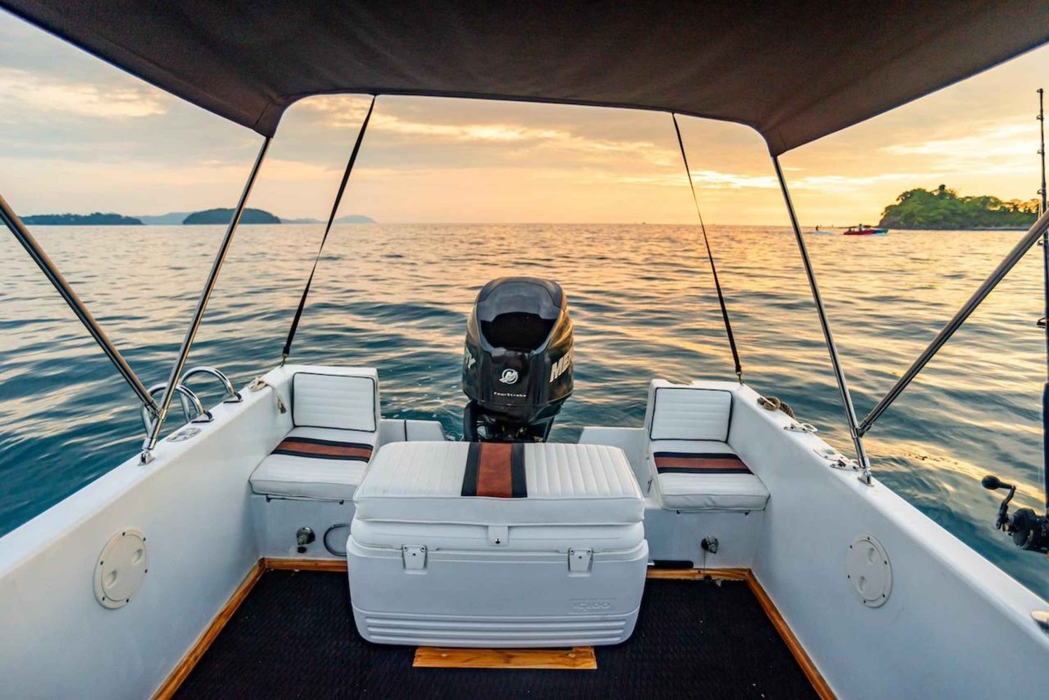Discover the most breath-taking views of the Pacific coastline. Sail along the coast and see some of the magnificent beaches surrounding Costa Rica and take in the gorgeous scenery while looking for all kinds of native sea species. Start your scenic cruise at the Flamingo beach front, where you will board our private charter boat. Head out to sea searching for dolphins, silver back jumping stingrays and sea turtles up to 4 miles from the coast. Continue your trip across crystal clear waters toward the shores of Las Catalinas bay. Admire the beautiful scenery as you float along the coast, passing the stunning Playa Potrero, Playa Penca, Playa Prieta & Sugar beach. Relax and enjoy the cool waters with cold drinks and snacks. If you're feeling adventurous, borrow a snorkel and mask and dive into the ocean to discover the underwater magical world.Includes