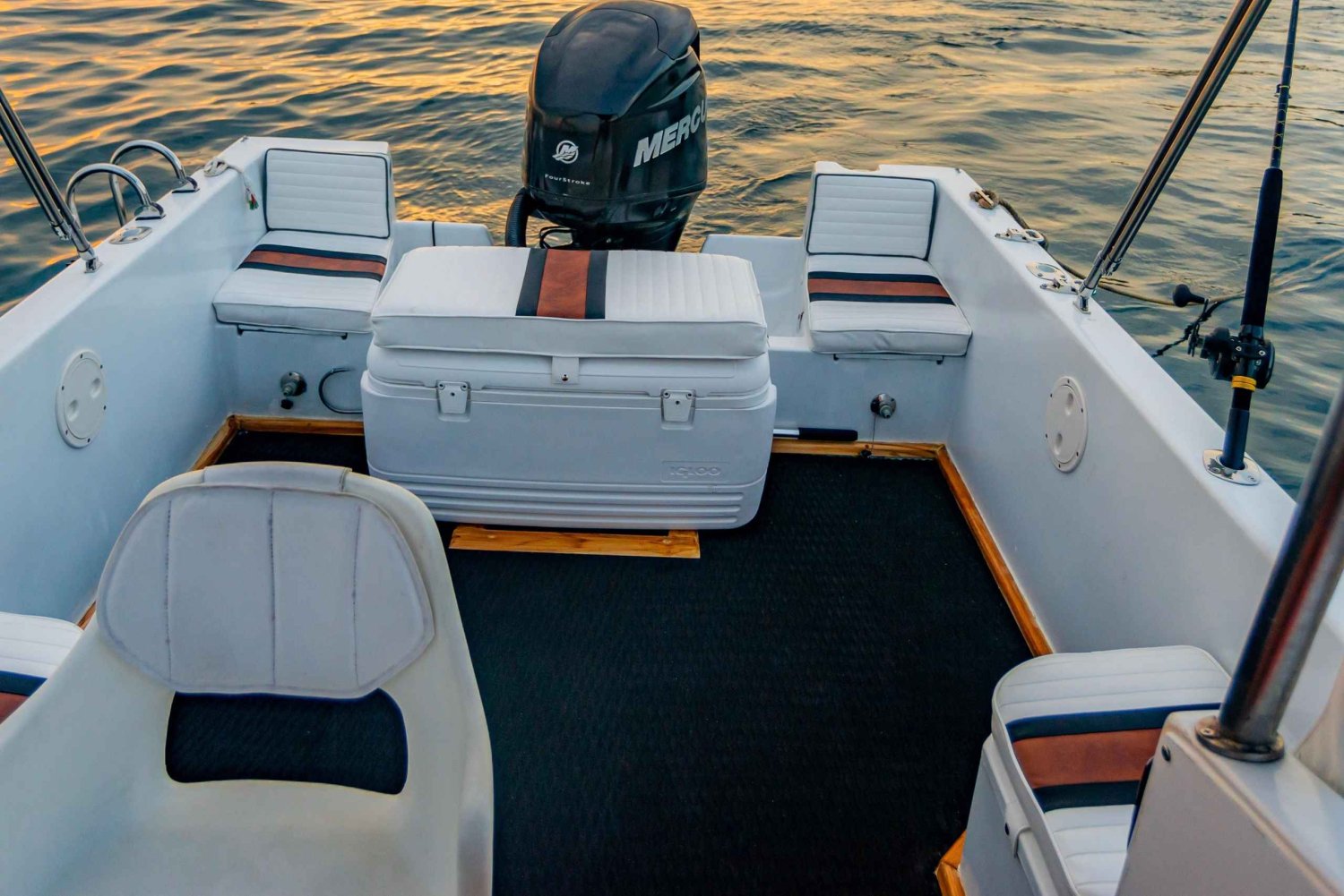 Marine toilet & privacy Wi-fi for Live streaming with friends and family 4k Drone video publishing options Experience a cruise on the Pacific Ocean Spectacular views of Dolphins, Silver back jumping Stingrays and Marine birds Learn about whale and dolphin behaviour and conservation Life vests and safety check prior to departing Bluetooth music 3-1 Lowrance GPS Under-deck cabin for storing personal items Alcoholic & non-alcoholic beverages & snacksEasy cancellation