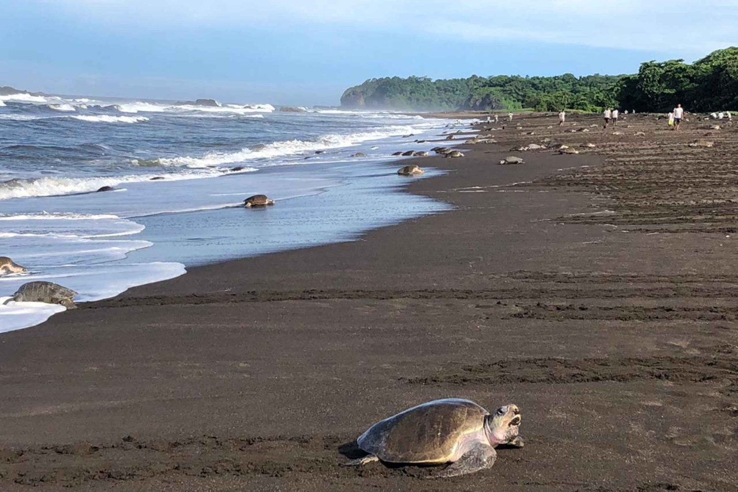 There is nothing like experiencing the arribada- where hundreds or thousands of mama sea turtles arrive on shore at Ostional beach to lay their eggs. If you're in town at the right time, you will definitely want to book our Ostional Turtle Watching Tour! The arribada happens once or twice a month, usually a few days before the new moon from August to December. Check if the arribada is happening before booking this tour as it only occurs for 3-4 days a month! Transportation and pick is up is available and can be added. You will get to watch the full process of a mama turtle laying her eggs up close and personal. There is nothing like watching her dig a nest, lay multiple eggs, bury them, and head back home to the sea. Our Ostional Turtle Watching Tour is very informative and will provide you with a unique experience that you will never forget! However, we can't control nature and there is a possibility to see less turtles than expecting!Important Information