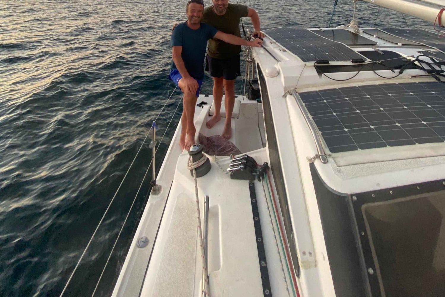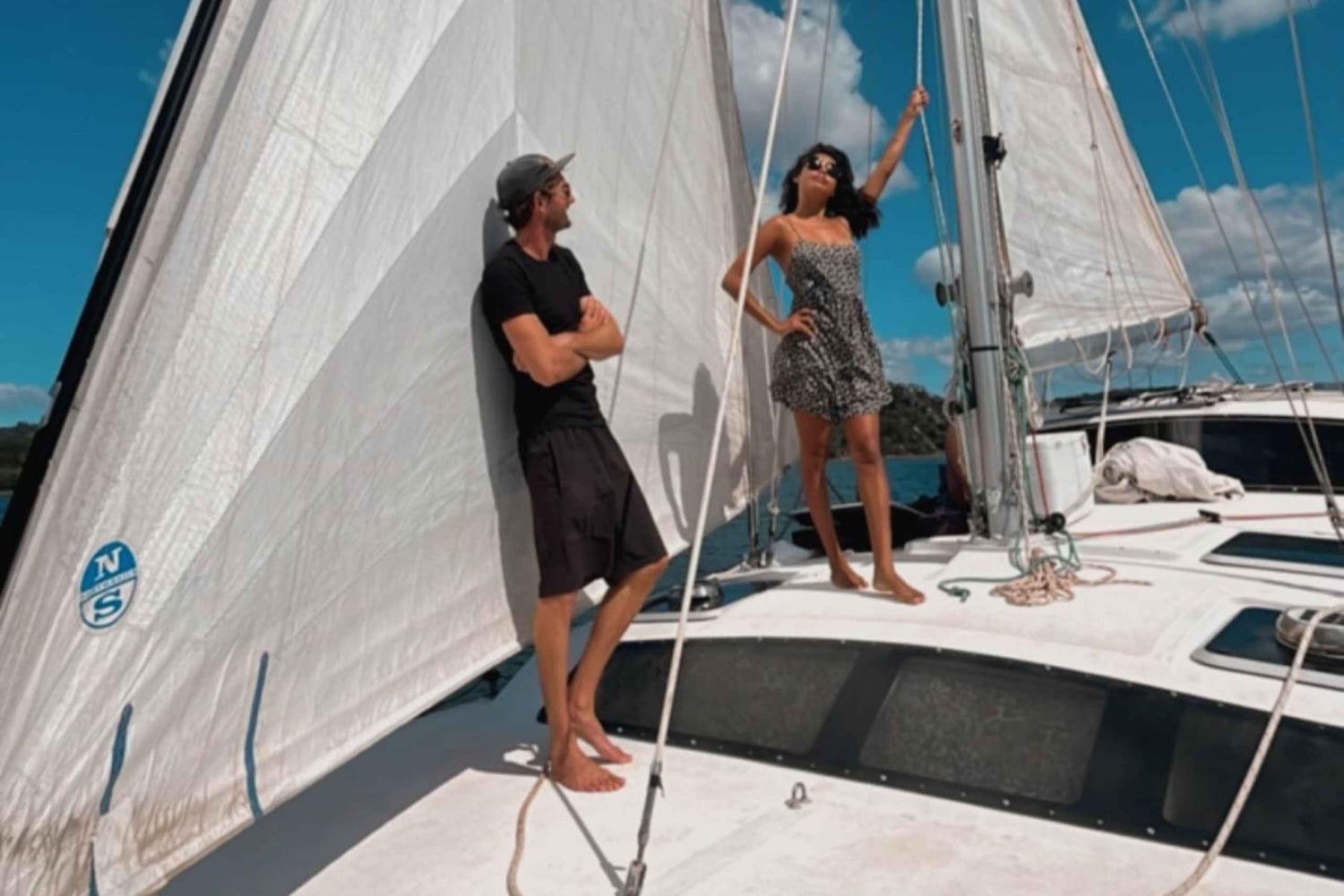 Set sail on a catamaran with a Mexican-French couple to explore the wonderful coast of Guanacaste, Costa Rica. From the Bay of Culebra, to the Bay of Flamingo, visit inaccessible and secret beaches, and enjoy a homemade meal and cocktails on board. Meet Michelle and Clement, the couple behind this sailing tour. Climb aboard Anna, a 34-foot catamaran, and set sail to explore the jewels of our coast ! Enjoy a homemade meal and cocktails on board. Keep an eye out for dolphins as you sail. If you're lucky, you might even spot some.Includes