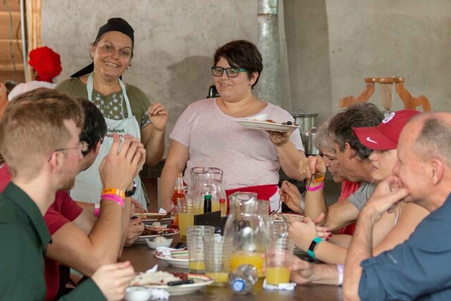 Embark on a full-day adventure exploring Costa Rica’s Arenal Volcano with this 3-in-1 combo tour. Begin your journey with a hike through the lush jungle surrounding the Arenal Volcano, navigating a series of nature trails and hanging bridges. Marvel at the diverse flora and fauna as you traverse the treetops and ground paths, offering a unique perspective of the rainforest. Next, descend to the base of La Fortuna Waterfall. The 20-minute hike down 500 steps is rewarded with the breathtaking sight of the waterfall cascading into a natural pool. Take a refreshing swim in the cool waters, or simply relax and soak in the serene environment. For those who prefer not to hike, the main facilities offer a restaurant, bathrooms, changing rooms, and a scenic observatory. Afterward, enjoy a traditional Costa Rican lunch prepared by La Familia Rodriguez. Savor the flavors of local farm and organic ingredients, and experience the warmth of Costa Rican hospitality. Relax with a homemade cup of coffee while listening to the soothing sounds of the nearby river. Conclude your adventure with a hike through the lava fields of past eruptions in Arenal Volcano National Park. Explore the unique landscape and keep an eye out for native wildlife. The tour ends with a drop-off at your hotel, leaving you with unforgettable memories of Costa Rica’s natural wonders.Includes