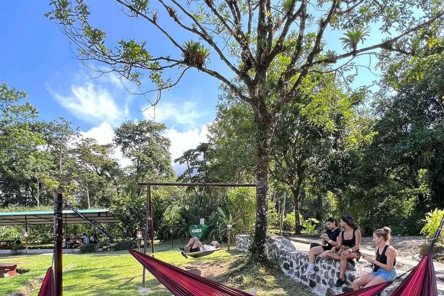 Spend a day at PEVA Park and enjoy a day of adventure and relaxation. Walk the jungle trails, visit the lava flows from 2010, 1968, and 1535, and relax with water activities at Tabacón Lagoon, where you'll find life jackets to swim in the lagoon. Explore the forest-covered trails and discover nature's diversity with experiences as the hugging three and nature amplifier an immersive auditive experience, jump from the Tarzan Swing, enjoy the beautiful picnic areas with your friends or family with the different extra activities available as canopy tour, atv rental, hot springs, kayaks and more, make your day at PEVA a very special one.Includes