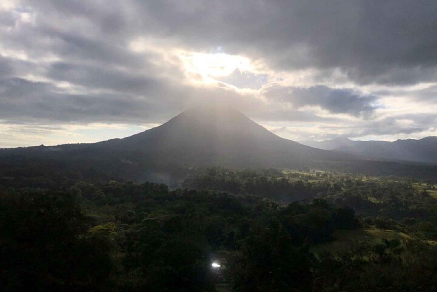 Arenal Inspirations – Nature Adventure Combo: Design Your La Fortuna Nature Adventure — Pick 3!! Discover La Fortuna and Arenal Volcano country with the Arenal Inspirations – Nature Adventure Combo, a full-day, customizable nature experience designed for travelers who want variety, local expertise, and comfort. Choose any three activities from our curated list to build a seamless half- or full-day itinerary. This small-group tour is led by a certified bilingual naturalist, includes round-trip transportation from La Fortuna hotels, all entrance fees, and a delicious traditional Costa Rican lunch at a local family-run restaurant. Perfect for couples, families, and nature lovers seeking an authentic Arenal Volcano adventure. Activities (pick any 3) • La Fortuna Waterfall — Hike a scenic rainforest trail to the base of the iconic 70-meter waterfall. Enjoy panoramic views, photo opportunities, and an optional swim in the clear pool surrounded by lush jungle. • Arenal Volcano Hike — Walk well-marked trails at the foot of Arenal Volcano, traverse historic lava fields, and learn about the volcano’s eruption history, geology, and local ecosystems. • Hot Springs — Relax in naturally heated geothermal pools set in tropical gardens. Soak in mineral-rich waters to restore body and mind after an active day. • Sloth Tour — Take a slow, guided walk through a protected wildlife corridor to spot two- and three-toed sloths, plus toucans, iguanas, and other resident species. • Butterfly Tour — Visit a tropical butterfly garden to observe native species up close, learn about metamorphosis, and discover local conservation efforts. • Night Tour — Explore the rainforest after sunset with a naturalist guide and flashlight to find tree frogs, nocturnal insects, reptiles, and other night-active wildlife. • Yoga Session — Choose a restorative or Vinyasa yoga class on an open-air deck or jungle studio with Arenal views — ideal for stretching and grounding at the beginning or end of the day. What’s Included • Round-trip hotel transportation within La Fortuna town and nearby areas • Certified bilingual naturalist guide • Entrance fees to selected sites and activities • Traditional Costa Rican lunch at a local restaurant • Bottled water during the tour (but we recommend you bring your own refillable water bottle) • Small-group format for a more personal experience (maximum 8-10 guests) Know Before You Go • Full-day experience (approximately 7–8 hours including transfers) • Guests select any three activities to customize their day • Bring comfortable walking shoes, swimwear, towel, sun protection, insect repellent, and a reusable water bottle • Tours operate rain or shine; a lightweight rain jacket is recommended • Some activities include uneven terrain or stairs; children must be accompanied by an adult Add hanging bridges as one of your options for an additional $10pp - contact us for more info.Includes