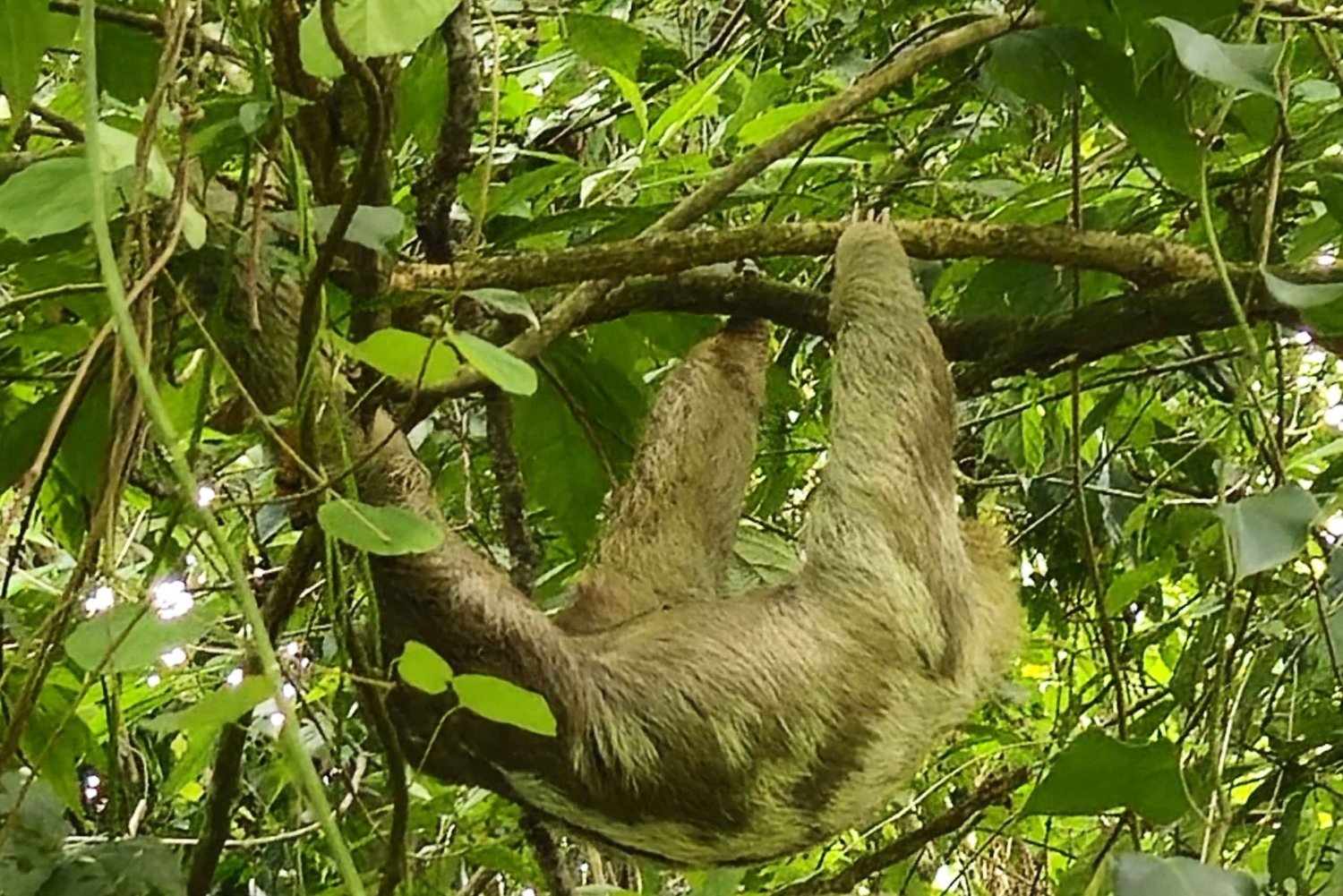 Step into one of La Fortuna’s most enchanting wild areas on a sloth-spotting tour that guarantees close, authentic encounters with both of Costa Rica’s beloved sloth species. This experience takes you along the lush canyon of a beautiful river, where dense rainforest, towering trees, and the constant whisper of flowing water create the ideal sanctuary for these gentle creatures. From the first steps of the walk, your naturalist guide teaches you how to look for the subtle signs of sloths hidden high among the branches—an unexpected curve in the canopy, the faint movement of a limb, the soft outline of fur blending with moss and leaves. The search becomes an adventure itself, building anticipation until your first sighting appears: a two-toed sloth nestled comfortably on a branch above the canyon. With its soft, golden face and long shaggy fur, it seems to move in harmony with the forest’s quiet rhythm. As the trail continues, the canyon opens into breathtaking views of emerald walls and turquoise water rushing below. The forest hums with life—colorful birds darting through the trees, butterflies drifting like petals in the air, and the gentle rustle of leaves stirred by the breeze. In this thriving habitat, the chances of spotting sloths are exceptionally high, and your guide leads you to a second unforgettable encounter: a three-toed sloth resting on a cecropia tree, its calm expression and slow, deliberate movements embodying perfect tranquility. Throughout the walk, you learn about the fascinating differences between the two species—the nocturnal habits of the two-toed sloth and the iconic, serene behavior of its three-toed cousin. You also discover how these forests protect their fragile lifestyles, providing safe corridors, abundant food, and the peaceful isolation they need to thrive. Moments near the river offer a refreshing pause. Mist rises from the canyon, cooling the air as sunlight filters through the branches, illuminating the forest in golden tones. Here, you might see a sloth crossing from tree to tree above the water, using natural canopy bridges that make this area such a thriving refuge. On the way back, your senses sharpen. You begin spotting sloths on your own—proof that you’ve learned to read the forest. Each new sighting feels like a quiet gift, a connection to a world that moves at its own deliberate pace. This tour is more than wildlife watching. It is an intimate, natural, unforgettable journey through one of La Fortuna’s hidden treasures—a guaranteed opportunity to find both sloth species living freely in their untouched habitat, surrounded by the breathtaking beauty of a river canyon that few visitors ever exploreIncludes