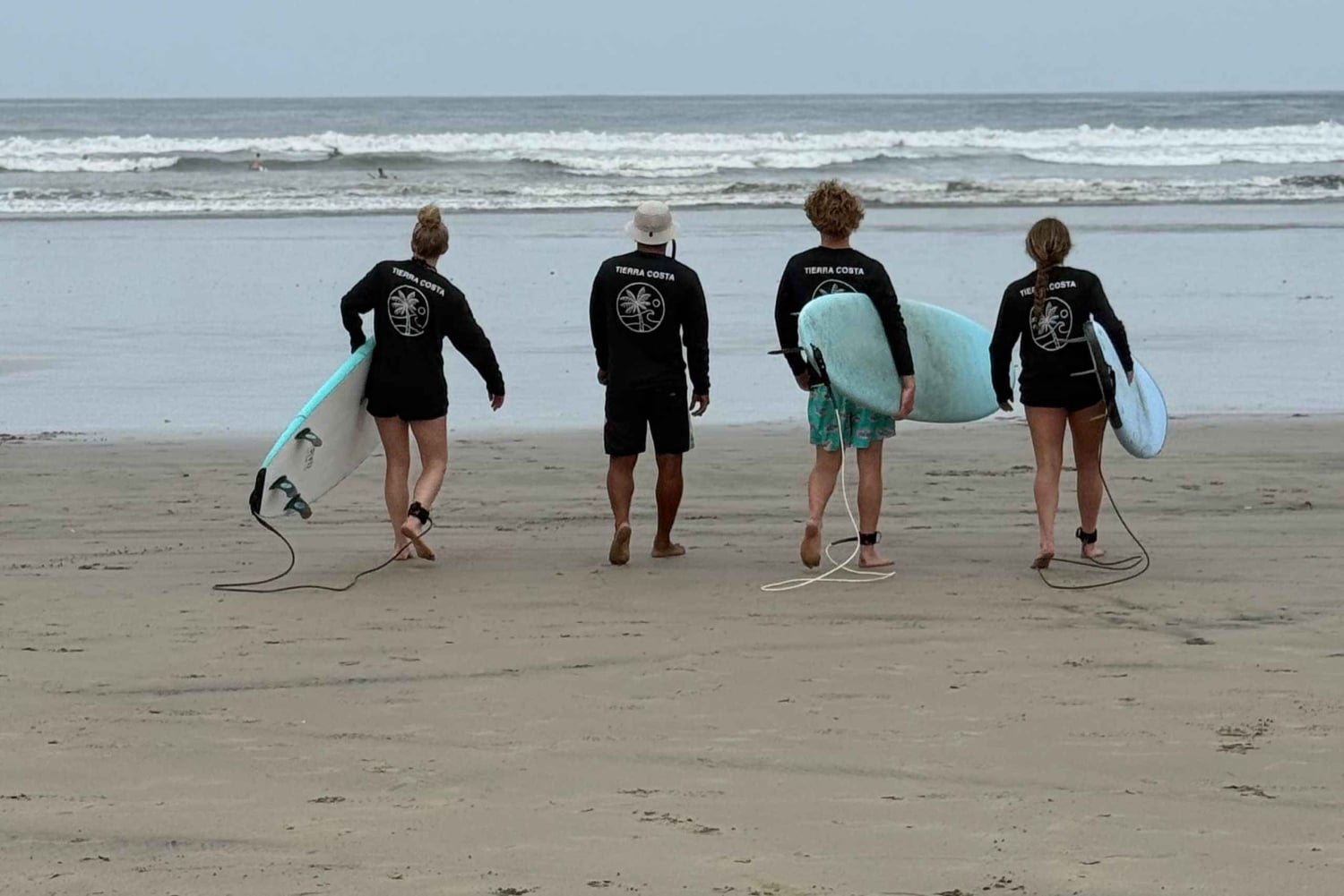 Head to Playa Guiones, a stunning 3-mile-long beach on Costa Rica's Pacific Coast, where you will meet your local surf coach and start your lessons. Playa Guiones is known for its crystal-clear waters, pristine sand, and perfect waves and it is one of the best places to surf with a sandy bottom and easy access beach break. Whether you’re a first-time surfer or an experienced rider, Tierra Costa has a lesson or rental package to suit you. Experienced instructors will teach you everything you need to know about surfing, from basic safety and beginner techniques on land to more intermediate and advanced skills in the waves. Enjoy consistent waves year-round at Playa Guiones, with some of the best surf breaks in the country. The waves range from gentle rollers for beginners to more challenging breaks for experienced surfers. Your guided surf lesson includes a board rental as well as a rash guard.Includes