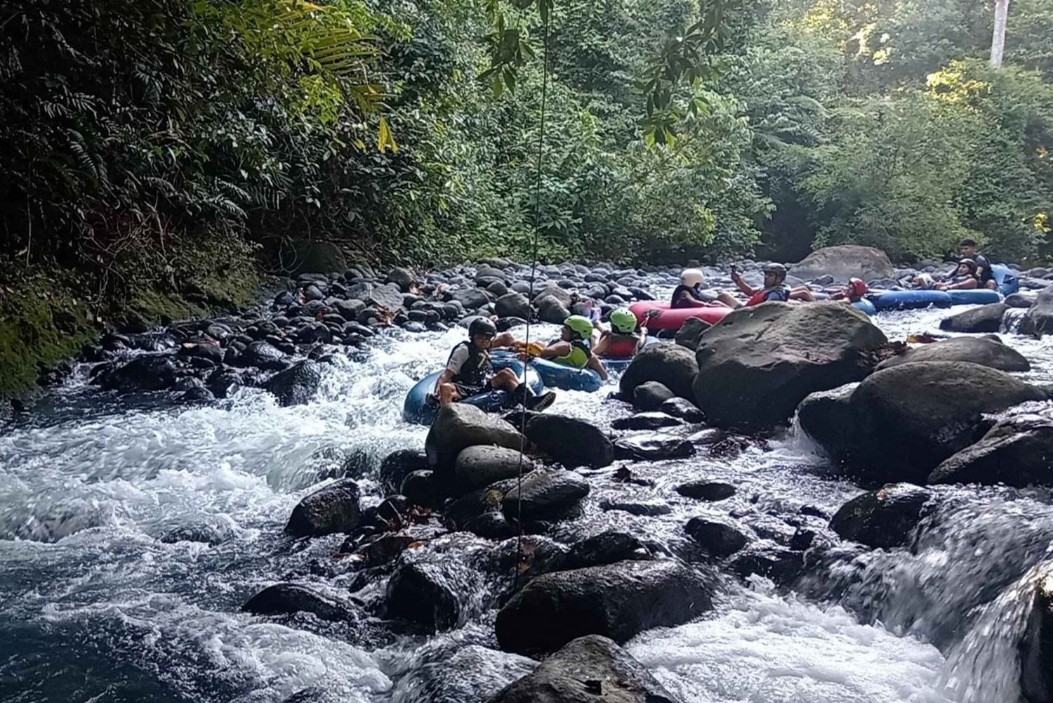 The tour begins from our office and this is where the excitement and fun begins with us, this is where you start to get on our unit and you will be transferred for 10 minutes to the beginning of our tours along the Celeste River, here where we will arrive and begin to prepare you for the adventure where we will give you life jackets, helmet and tubing, along with this we will give you a 10 minute talk how the explanation will be on our 2 hour and 30 minute adventure tours along the Celeste River where we will see flora and fauna of the route in addition to the adrenaline of going down the rapids of the Celeste River. Here we will have photo and video sections. Then we will pass you the photos with the videos on WhatsApp. On the tour we will make a stop to enjoy the Tarzan swing along the Celeste River and a volcanic clay spa. Then we will continue along the Celeste River where our staff will be waiting for you at the end with fruits, bottles of water and towels. Then here we will take you directly to our office. At the end in the office we will have a wifi area and changing rooms.Includes