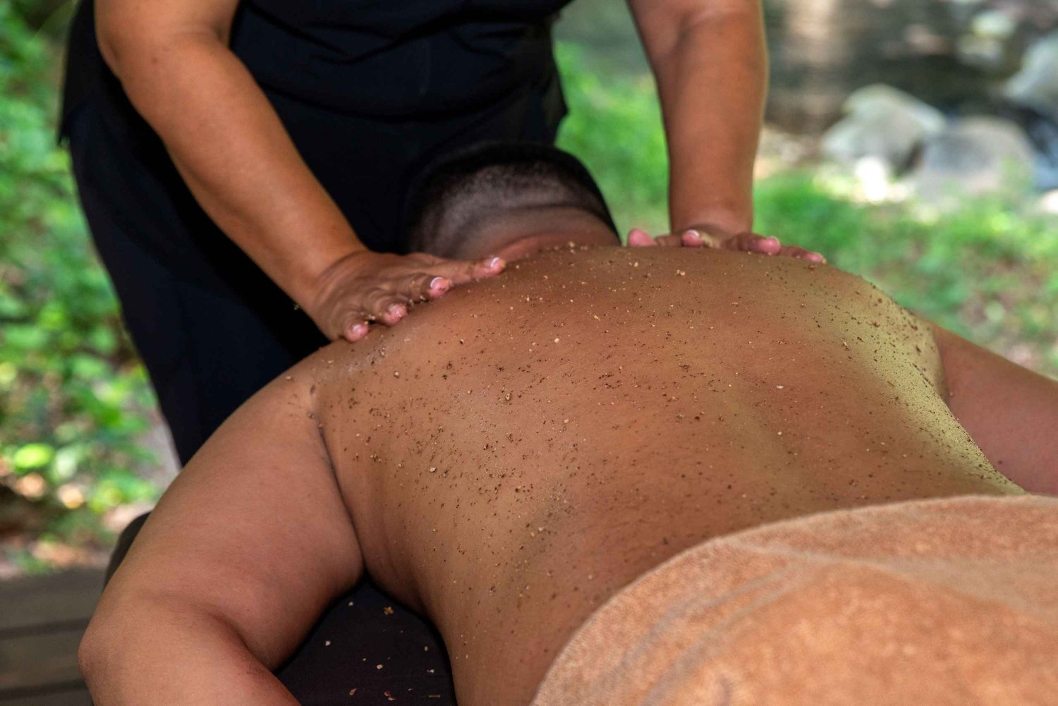 Koe 75 minuutin tulivuoriperäinen mutahieronta ja kahvihieronta Simbiosis Spa -kylpylässä Curubandessa. Tunne vulkaanisen mudan detoksifioivat ja ravitsevat ominaisuudet ja nauti kahvilla täytetyn hieronnan aromaattisesta kokemuksesta.