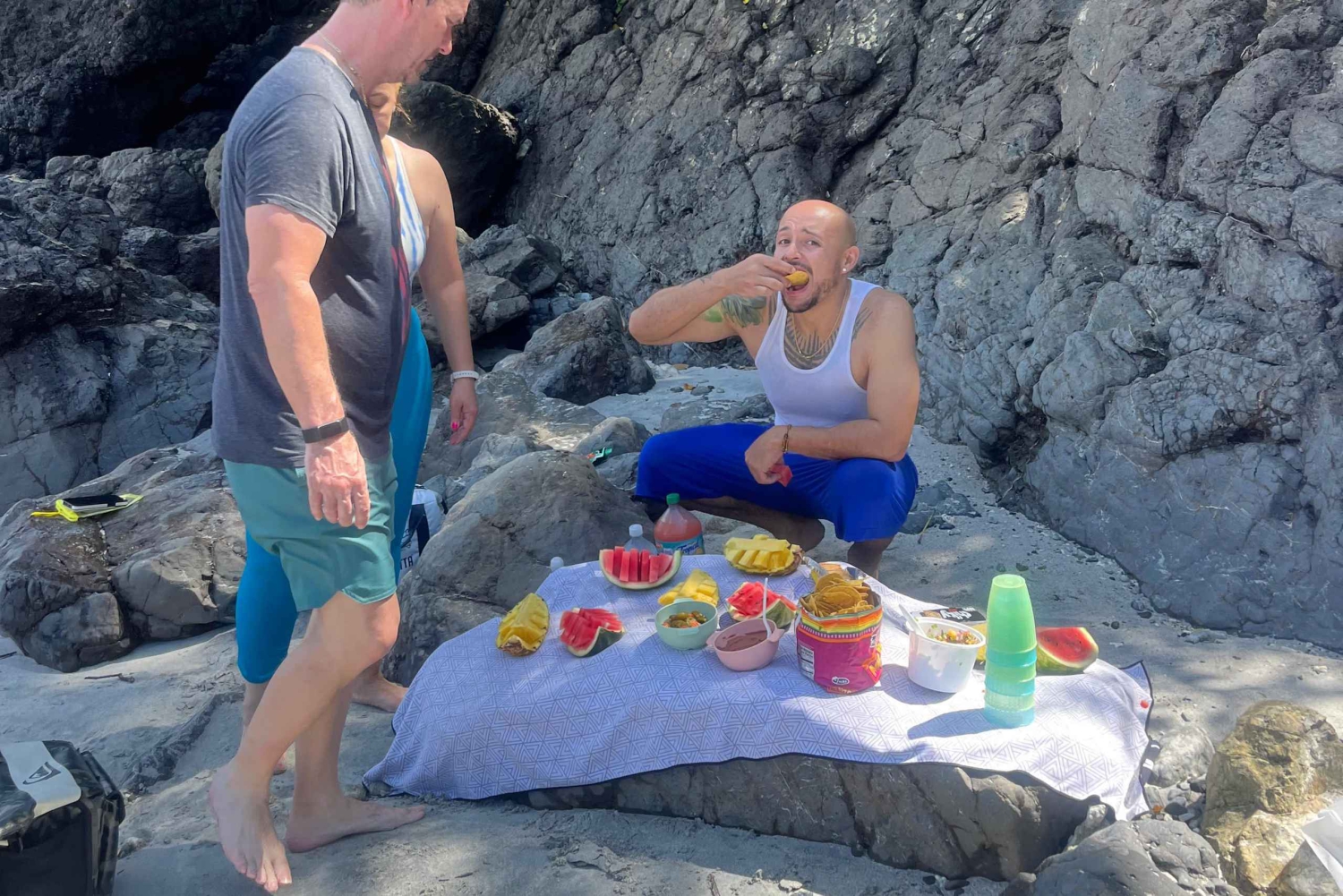 Aloita seikkailusi Nahomi-puistosta, jossa sinulle kerrotaan jännittävästä matkastamme. Melo Queposin kauniilla vesillä, kun käymme kolmella upealla rannalla. Jokaisella pysähdyspaikalla sinulla on aikaa levätä ja ihailla majesteettisia kalliomuodostelmia ja rehevää kasvillisuutta, jotka kehystävät tätä trooppista paratiisia. Pysähdymme Biesanzin rannalla virkistävää snorklausta varten. Nauti raikkaita, jäähdytettyjä hedelmiä ja vettä latautuaksesi ennen kuin lähdemme takaisin. Koko retken ajan oppaasi tallentaa parhaat hetket kameralla, GoPro-kuvauslaitteella ja mahdollisesti lennokilla, jotta saat varmasti upeita muistoja kotiin vietäväksi.Includes