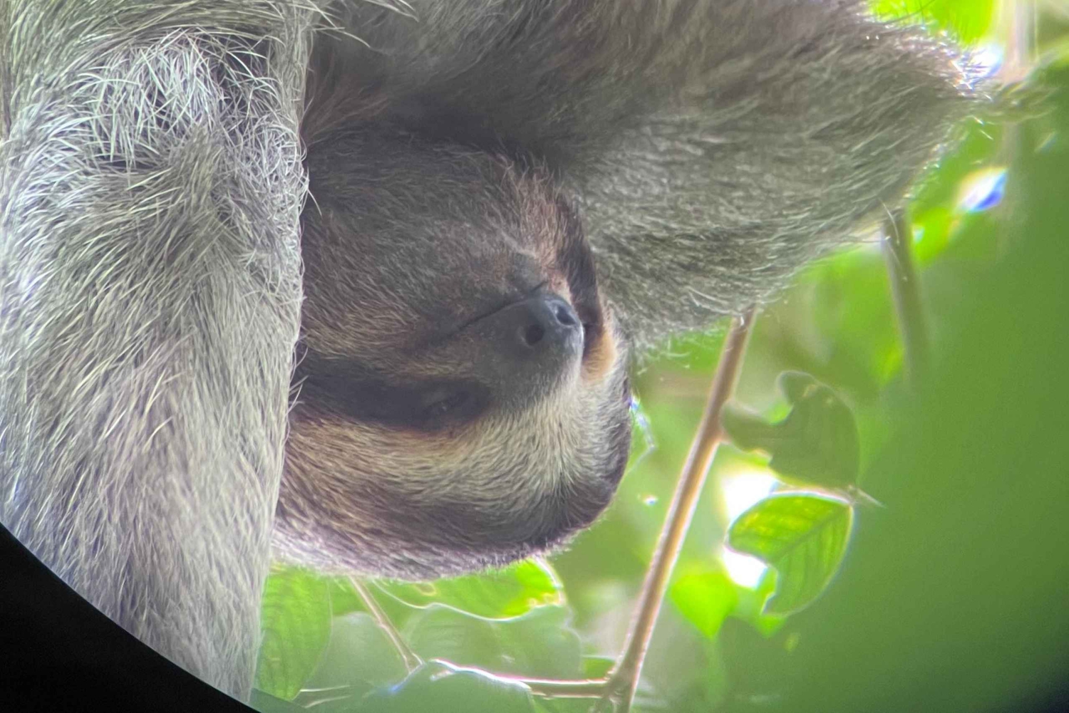 ( Kansallispuiston sisäänpääsyliput eivät sisälly hintaan). Toiminta on periaatteessa helppoa vaellusta alle 1,2 mailia, mutta meidän on mentävä hitaasti, koska eläimet ovat hyvin naamioituneita, kuten laiskiaiset, liskot, käärmeet, linnut. Tuon omat optiikkalaitteet eläinten löytämiseksi, voin myös auttaa sinua ottamaan kuvia ja videoita niin paljon kuin haluat, aina yritän sitä parasta laatua koskaan. Vietämme melkein 2 tuntia kävellen, pysähdymme kahvilassa pienelle tauolle ja sitten päätämme rannalla, koska emme koskaan tiedä, mitä voimme löytää, sitten olet täysin vapaa tutkimaan kansallispuistoa omatoimisesti.Includes