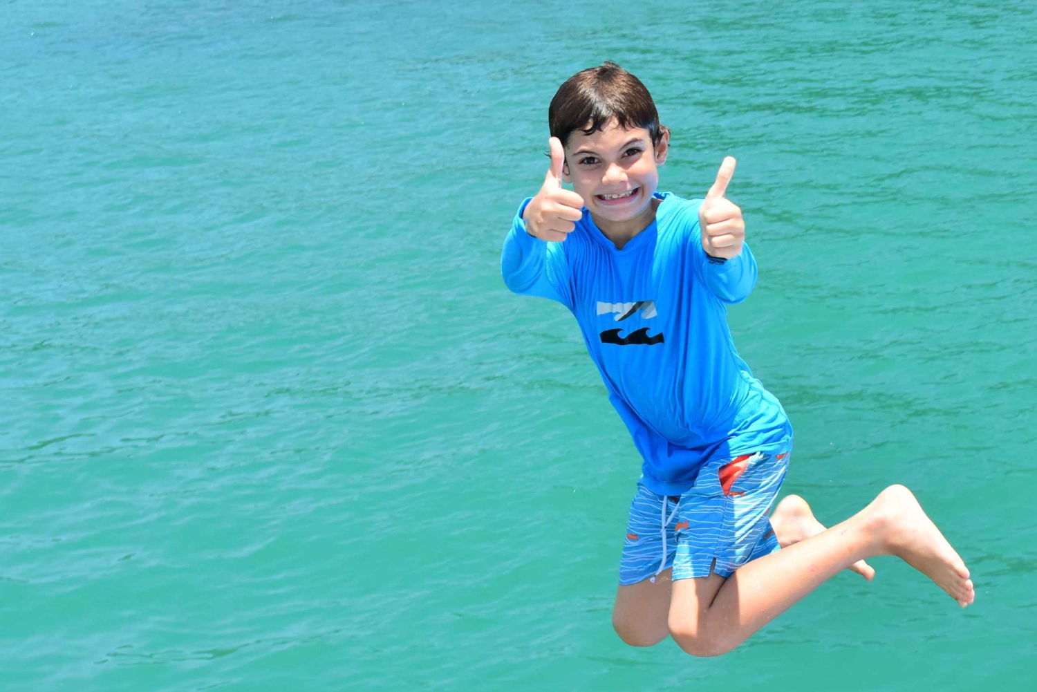 - Nagez, faites de la plongée avec tuba, dévalez les toboggans aquatiques et sautez sur le trampoline.