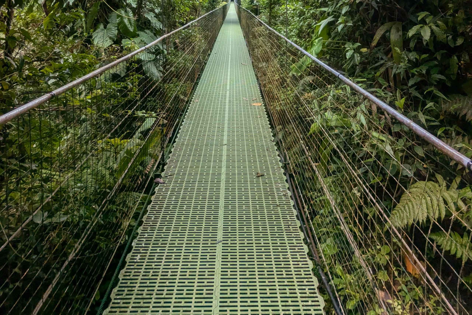 Intraprendi un viaggio in alto rispetto al suolo della foresta, dove camminerai lungo ponti sospesi che ondeggiano dolcemente con la brezza, circondato dalla lussureggiante chioma verde di Monteverde. Quest'avventura ti porta in profondità nella foresta nuvolosa, offrendoti viste mozzafiato dalle passerelle a livello degli alberi, dove ogni passo rivela una nuova prospettiva di questo incantevole ecosistema. Attraversando i sentieri sospesi, incontrerai un mondo pieno di vita: uccelli variopinti che svolazzano tra i rami, bromelie aggrappate ai tronchi degli alberi e forse anche una scimmia curiosa che si dondola nelle vicinanze. Ad ogni ponte ti immergerai ancora di più nelle meraviglie della foresta nuvolosa, sperimentando la sua miscela unica di nebbia, alberi imponenti e un'incredibile varietà di flora e fauna. Questo tour è ideale per tutti coloro che desiderano immergersi nella foresta nuvolosa da un punto di osservazione unico al di sopra del suolo della foresta, dove il cuore della ricca biodiversità di Monteverde prende vita. La combinazione di bellezze naturali, avvistamenti di animali selvatici e l'emozione di camminare in alto tra le cime degli alberi rendono questa esperienza indimenticabile. Ricorda: i biglietti d'ingresso al parco si pagano separatamente.Includes