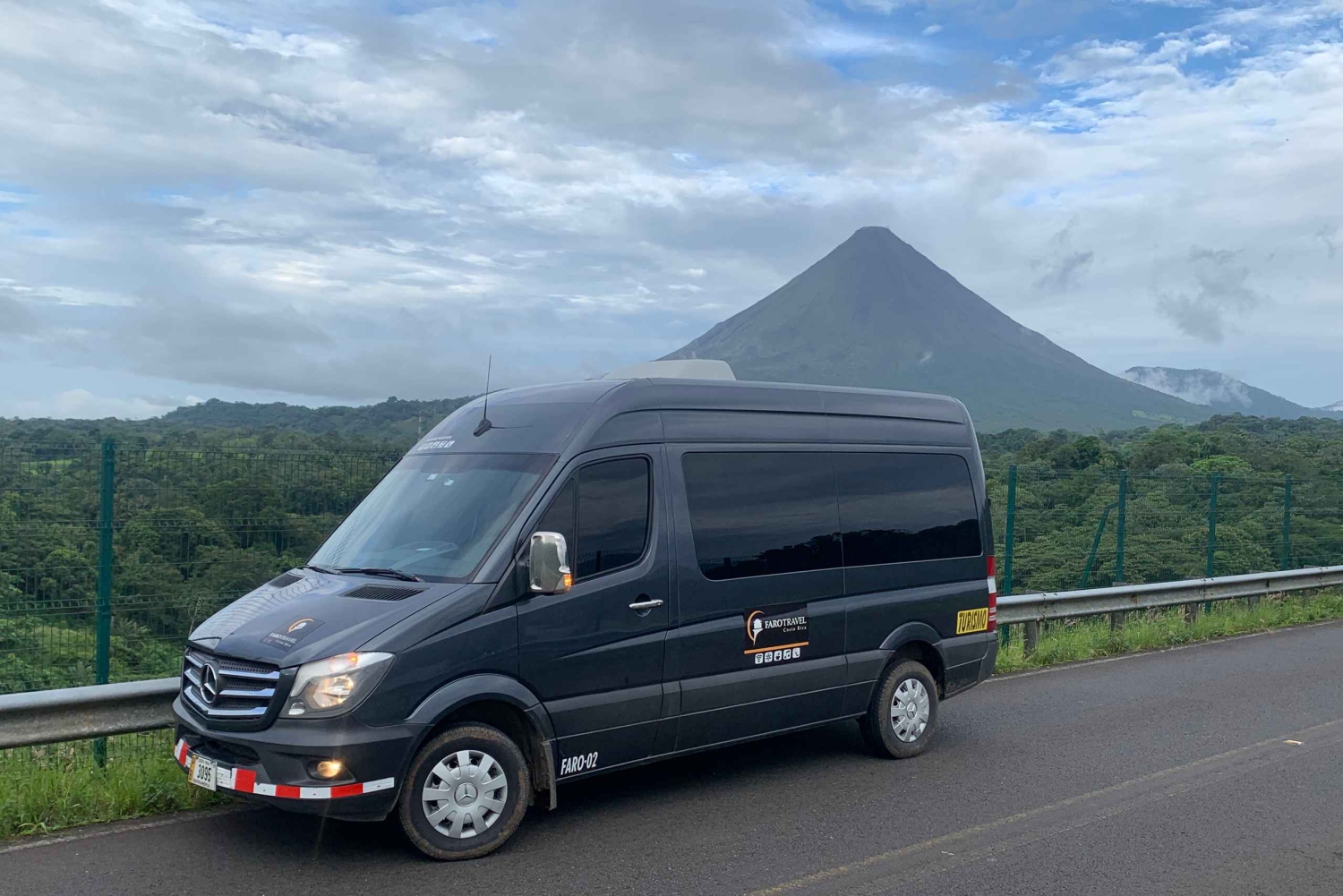ラ フォルトゥーナとモンテベルデの間は、アレナル湖を渡るバン - ボート - バンの乗り継ぎで簡単に移動できます。 2 つの町を結ぶ最速のルートで、アレナル火山国立公園とモンテベルデ雲霧林の美しさを体験できます。 ラ フォルトゥナのホテルのドアからモンテベルデまたはサンタ エレナの場所までの移動をお楽しみください。アレナル湖での 1 時間のセーリングを含め、移動には約 3 時間かかります。 湖、アレナル火山国立公園、モンテベルデ雲霧林の壮大な景色をご覧ください。足を伸ばしたり、バスルームを利用したり、景色の写真を撮ったり、食べ物を購入したりするためのピットストップの時間もあります。バンに乗って無料のwifiを利用してください。 非プライベート転送は事前に設定された毎日のスケジュールで動作し、プライベート オプションはいつでもスケジュールできます。どちらのオプションにも、指定されたゾーン内からのドアツードアのピックアップとドロップオフが含まれます。Includes