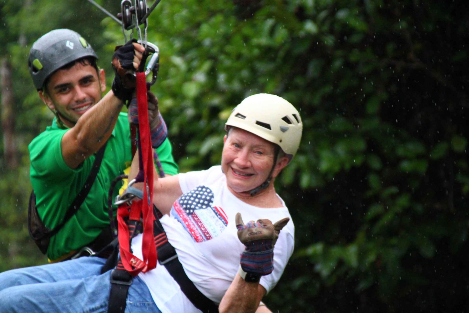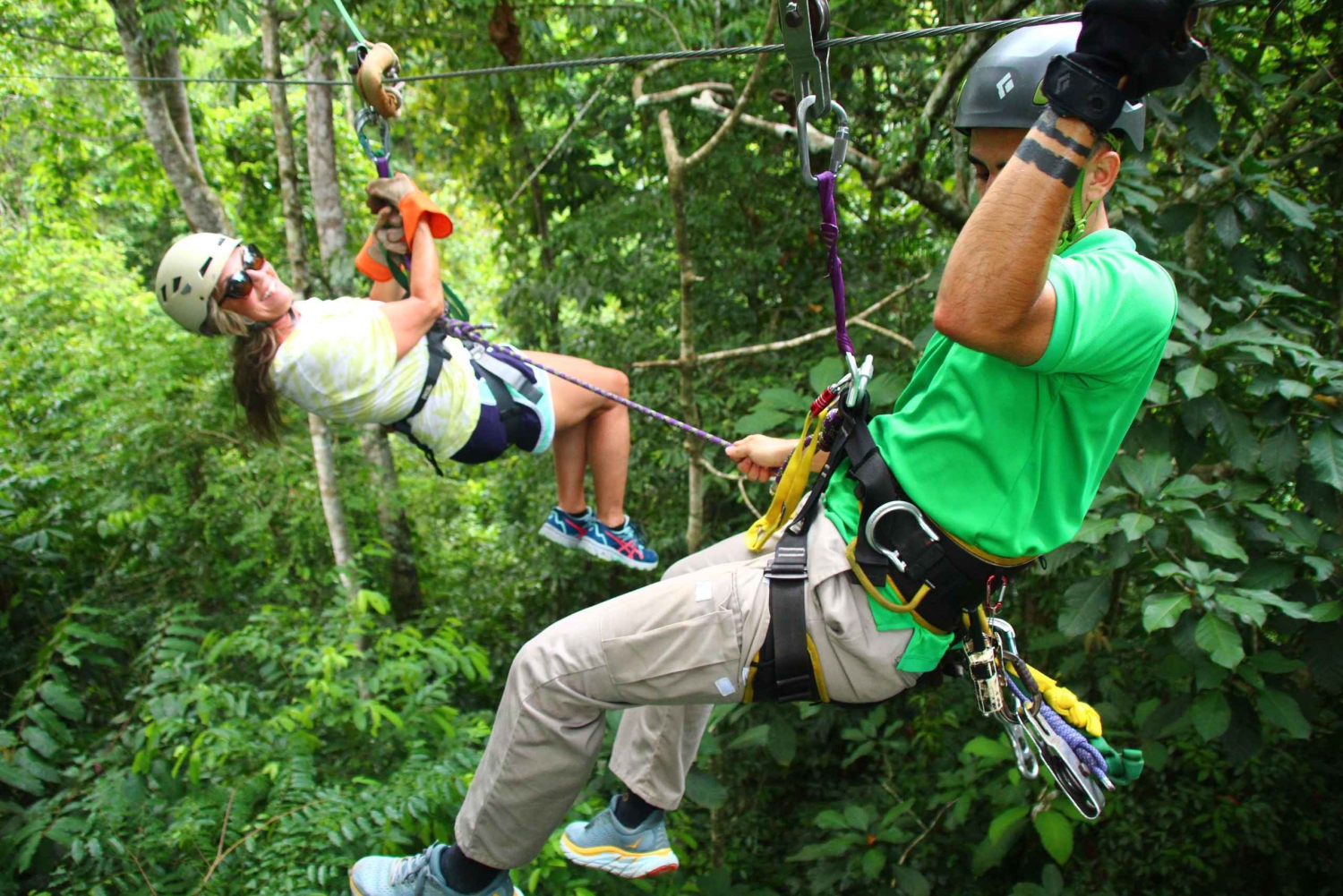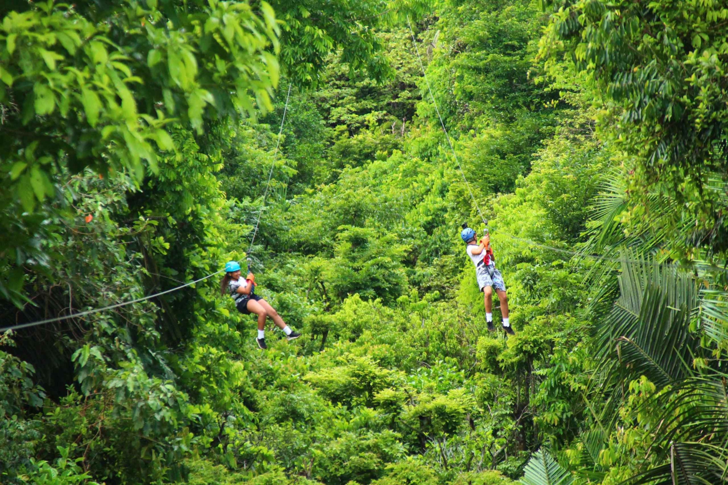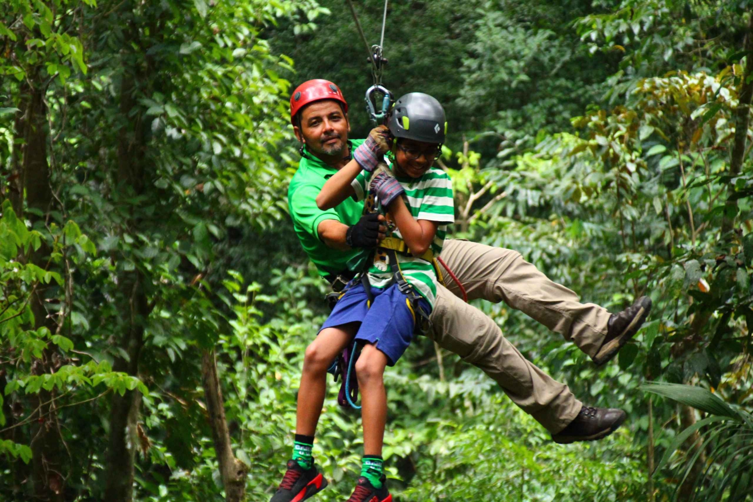 2 時間の旅の間、ジャングルの地面から高くそびえる 20 のプラットフォームの 1 つに腰掛け、渓谷のドラマチックな景色を堪能できます。最長 450 メートル (1,475 フィート) に及ぶ 10 本のジップライン ケーブルが、手つかずの熱帯雨林の樹冠を巡る特別なツアーです。 丘の上の展望台で休憩しながら、息を呑むような山と渓谷の景色を堪能できます。ツアーの最後には、最後のケーブルで終了するか、追加料金なしでラペル プラットフォームとターザン スイングを行うかを選択できます。 キャノピー ツアーの終了時に、ゲストはコスタリカ料理のフル ミール、フルーツ、ドリンクを楽しみます。休憩してエネルギーを補給している間、ガイドが大画面テレビで爽快なジップライン アドベンチャーの写真を共有します。Includes