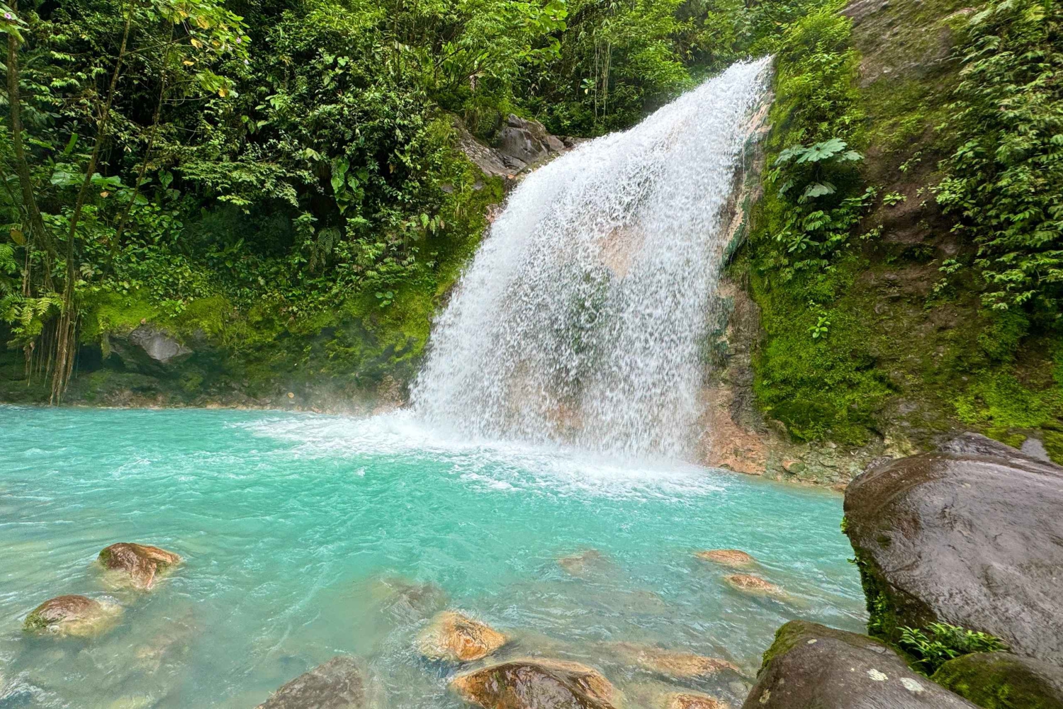 ラ・フォルトゥナ発の日帰りツアーで、美しいブルーウォーターフォールをご覧ください。4時間の自由時間を利用して、トレイルを探索し、鮮やかなターコイズブルーの海と緑豊かなジャングルをお楽しみください。