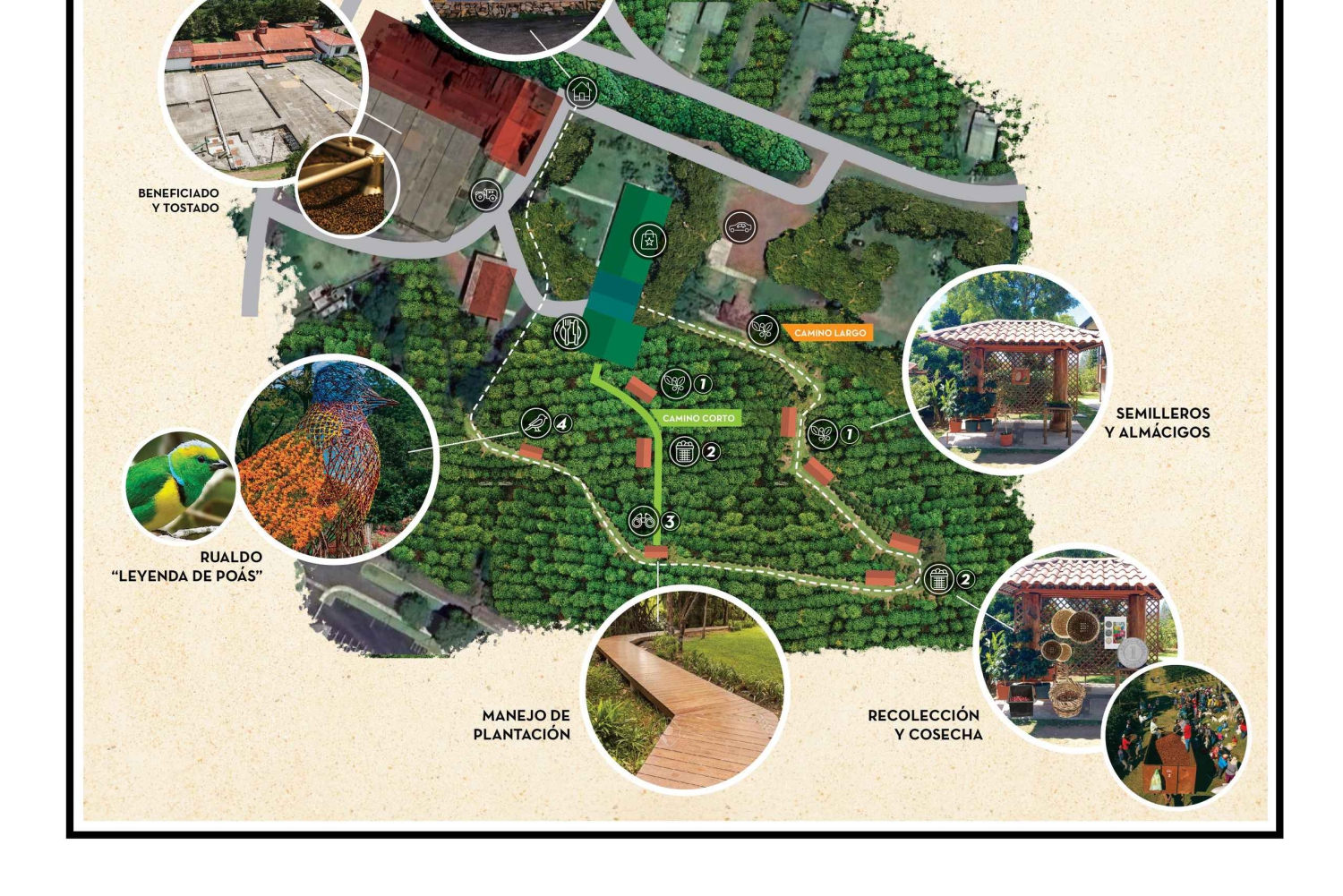 Vi starter turen med en deilig iskaffe som velkomstdrink og går deretter gjennom en kaffeplantasje der vi besøker ulike stasjoner som kaffegartneri, våtmølle, tørketerrasser, brenneri og suvenirbutikk. Vi får også en kaffeprøve med ulike blandinger og brenninger. Etter omvisningen kan du utforske sommerfuglhagen og den botaniske hagen og ta flotte bilder av stedet. Hvis du er sulten, har vi en restaurant der du kan nyte typisk mat og den lokale smaken i tillegg.Includes