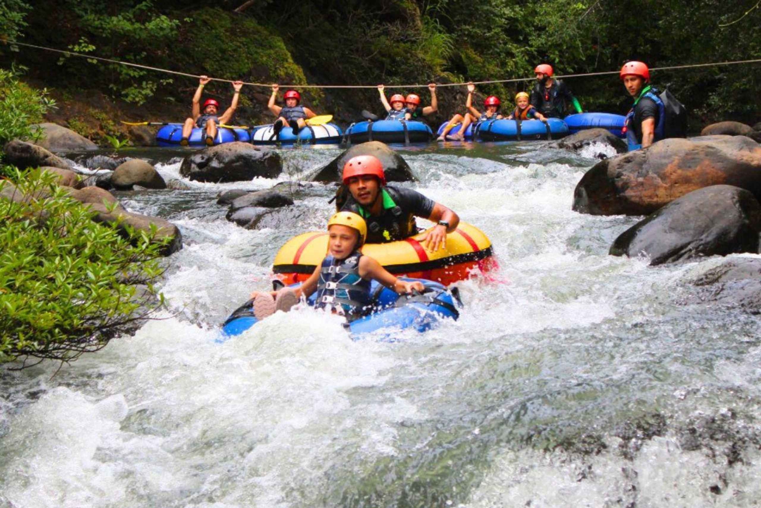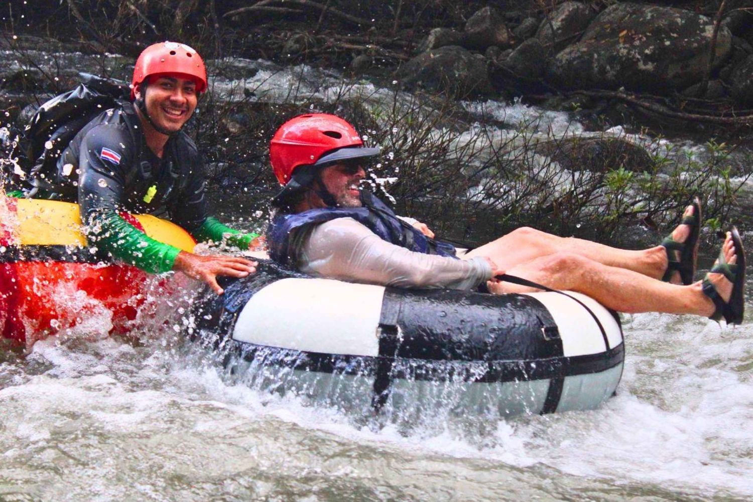 Ikke egnet for gjester med kne-, ankel-, gang- eller bevegelsesbegrensninger. Vær oppmerksom på at aldersgrensen for elvetubing er 6 år. Beskrivelse: La Leona-fossen Legg ut på en spennende eventyrvandring gjennom skogen for å nå den majestetiske La Leona-fossen. Her kan du beundre de utrolige fjellformasjonene, krysse vannstrømmer og klatre opp små stiger. På slutten av turen trekker vi oss med tau for å nå en enorm grotte, hvor du kan svømme og utforske den fantastiske fossen. Ikke gå glipp av denne enestående opplevelsen! Beskrivelse: Elve-tubing Bli med på et spennende elve-tubing-eventyr på en smal, turbulent elv med 4 km (2,5 miles) med stryk i klasse I, II og III! Sprett og sprut deg gjennom endeløs moro og spenning med våre spesialdesignede individuelle flåter med håndtak og beskyttende bunn. Med våre dyktige guider kan du være trygg på at sikkerheten og fornøyelsen er garantert gjennom hele opplevelsen. Sammendrag av aktivitetene La Leona Waterfall Adventure Hike: 2 km hver vei (1,5 miles hver vei) Varighet: 3 timer fra start til mål Vanskelighetsgrad: Forrædersk fottur på moderat nivå (ikke egnet for gjester med kne-, gang- eller bevegelsesproblemer) Elvepadling: 4 kilometer (2,5 miles) med stryk i klasse I, II og III langs denne smale, turbulente elven med krystallklart vann. Varighet: 1 time og 30 min: 1 time og 30 minutter.Includes