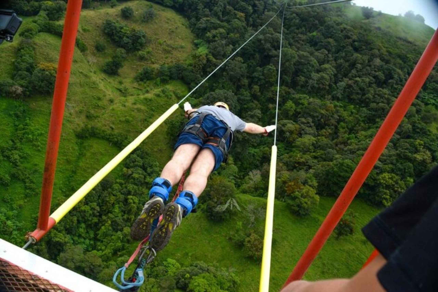 Ta spranget fra det høyeste strikkhoppstedet i Mellom-Amerika på denne strikkhoppturen i Monteverde. Sterke kabler og hjelm holder deg trygg, mens guidene presser deg ut av komfortsonen for et ekstremt eventyr midt i tåkeskogen. Det er en sjanse til å se landskapet som aldri før. Møt guiden din og få påmontert hjelm. Deretter tar du en trikk som beveger seg gjennom et kabelsystem for å nå punktet der de mest vågale hopper ut i det tomme intet fra 143 meters høyde. Etter hoppet kan du ta deg tid til å nyte utsikten over tåkeskogen. Deretter går du tilbake til startpunktet for å avslutte turen.Includes