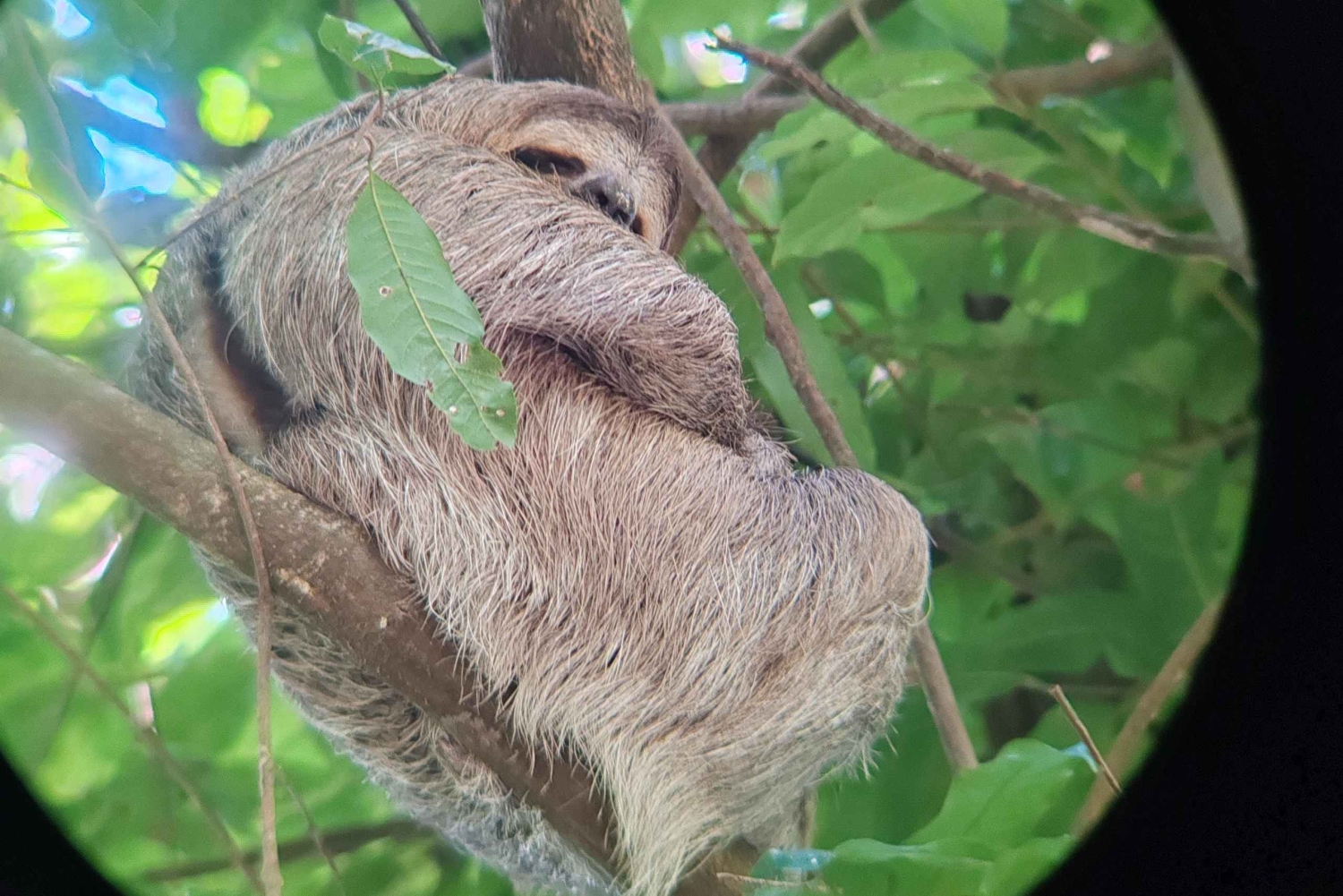 Møt opp på det sertifiserte guidekontoret utenfor parken, og gjør deg klar til å vandre gjennom en majestetisk skog når du går inn i parken. Ta deg gjennom de naturskjønne stiene i Manuel Antonio nasjonalpark, som er hjemsted for dovendyr, aper, tukaner, øgler, frosker og mye mer. La guiden din hjelpe deg med å finne disse fascinerende artene i deres naturlige habitat, og dra nytte av profesjonelt optisk utstyr som teleskop og kikkert for å se dyrene på nært hold og ta flotte bilder i HD. Etter turen kan du bli igjen og nyte den vakre hvite sanden og korallrevene i Manuel Antonio Park.Includes