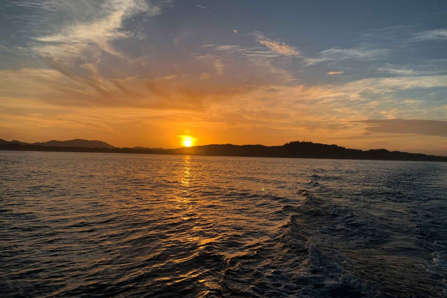 Gå om bord i en 11,5 meter lang katamaran med plass til 22 personer og et mannskap på 3 personer. Beundre skjønnheten ved Stillehavskysten og de utrolige marine artene som besøker oss noen måneder i året. Bestill favorittdrinkene dine mens du slapper av med musikk du elsker, eller nyt det på din måte med det morsomme mannskapet som vil følge deg. Stopp ved den private stranden som er tilgjengelig for bading og vannaktiviteter som snorkling, padlebrett og kajakkpadling. Svøm til stranden og løp på den hvite sanden, slapp av i solen mens mannskapet tilbereder deilige retter for å glede deg før du setter seil tilbake til Tamarindo. Det blir en time med uforglemmelig moro og avslapning. Opplevelsen avsluttes med en fantastisk solnedgang ved kysten. Vi ses om bord!Includes