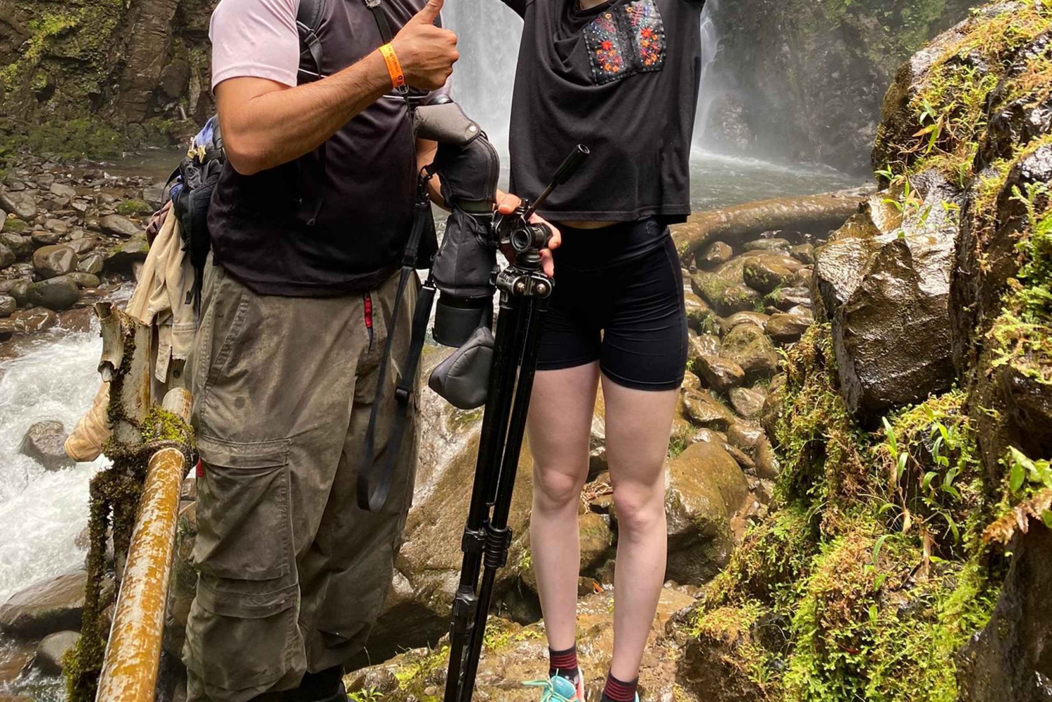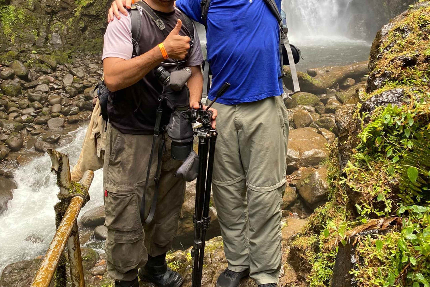 Spotkaj się z przewodnikiem i wejdź do bujnego, mglistego lasu. Zadbaj o to, aby Twoja grupa była niewielka, co pozwoli Ci na osobiste i intymne doświadczenie, umożliwiając nawiązanie kontaktu z naturą bez tłumów. Dzięki wysokiej jakości lunetom masz szansę zobaczyć niesamowitą dziką przyrodę z bliska. Zobacz wspaniałego kwezala, ale las jest również domem dla olśniewającej gamy innych ptaków, ssaków i unikalnych gatunków roślin. Podczas 2,5-3-godzinnego spaceru przewodnik opowie Ci ciekawe historie o ekologii lasu mglistego, jego historii i skomplikowanych relacjach między jego mieszkańcami. Odwiedź piękny ogród kolibrów, gdzie możesz podziwiać szybkość i zwinność tych malutkich, kolorowych ptaków. Aby Twoje wspomnienia były niezapomniane, otrzymasz zdjęcia flory i fauny, które zobaczysz podczas wycieczki.Includes