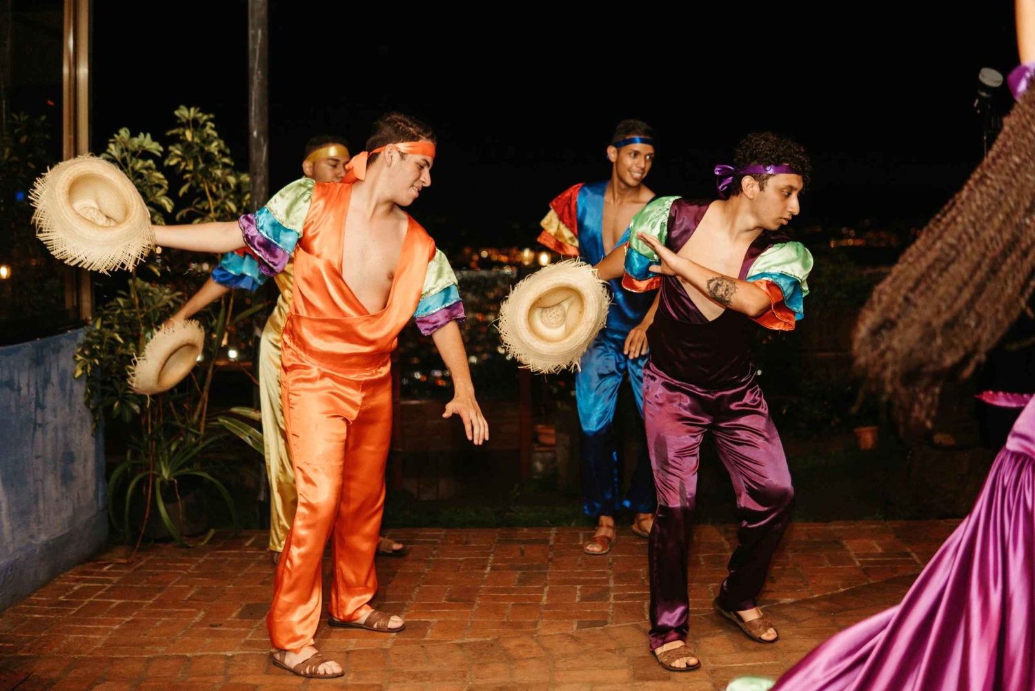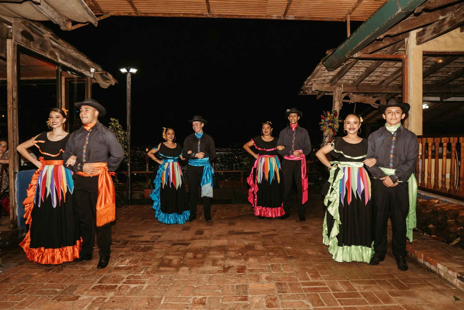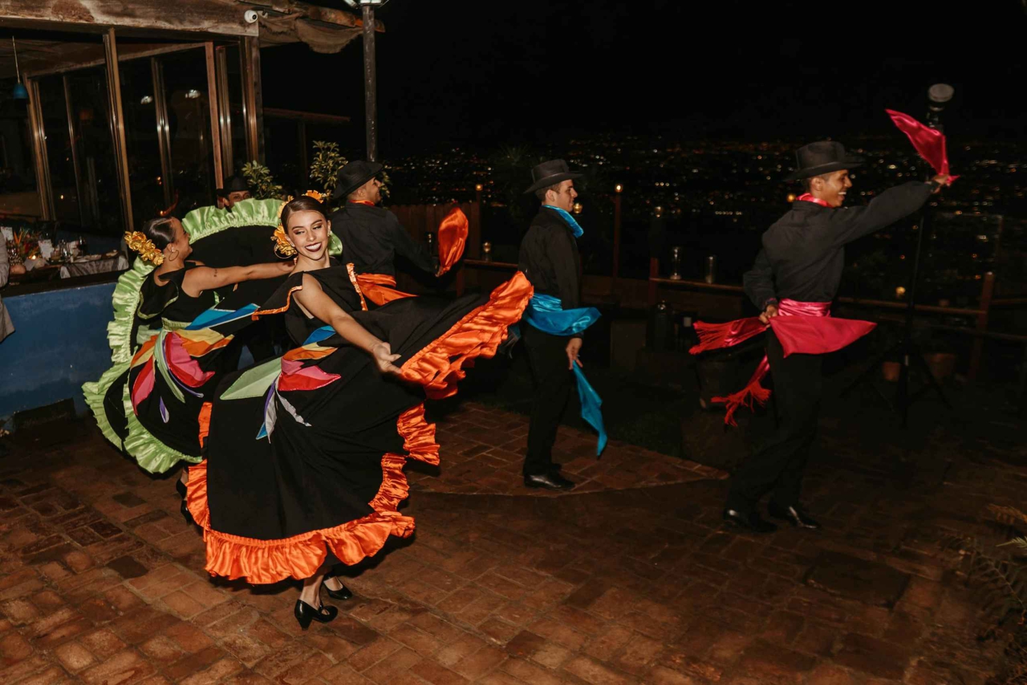 Rozpocznij wieczór od wygodnego odbioru z hotelu lub Airbnb w San José. Podziwiaj malownicze widoki, słuchając opowieści przewodnika o zwyczajach, które ukształtowały ten kraj. Dowiedz się, jakie znaczenie dla tożsamości Kostaryki ma jedzenie, muzyka i taniec. Przyjedź do urokliwej, tradycyjnej restauracji otoczonej przyrodą i rustykalnym wystrojem. Wypij 2 koktajle i delektuj się pyszną kostarykańską kolacją przygotowaną z lokalnych składników i smaków przekazywanych z pokolenia na pokolenie. Podczas kolacji atmosfera zmienia się w kulturalne święto. Show tańca ludowego wypełnia przestrzeń żywymi kostiumami, rytmami na żywo i energiczną choreografią, która reprezentuje radość i historię Kostaryki. Twój przewodnik wyjaśni Ci znaczenie tańców, symbolikę strojów i korzenie kulturowe, które sprawiają, że ten występ jest tak wyjątkowy. Zrób zdjęcia z tancerzami i dowiedz się więcej o kostiumach i znaczeniu tańca. Na koniec zrelaksuj się podczas wygodnej podróży powrotnej do San José.Includes