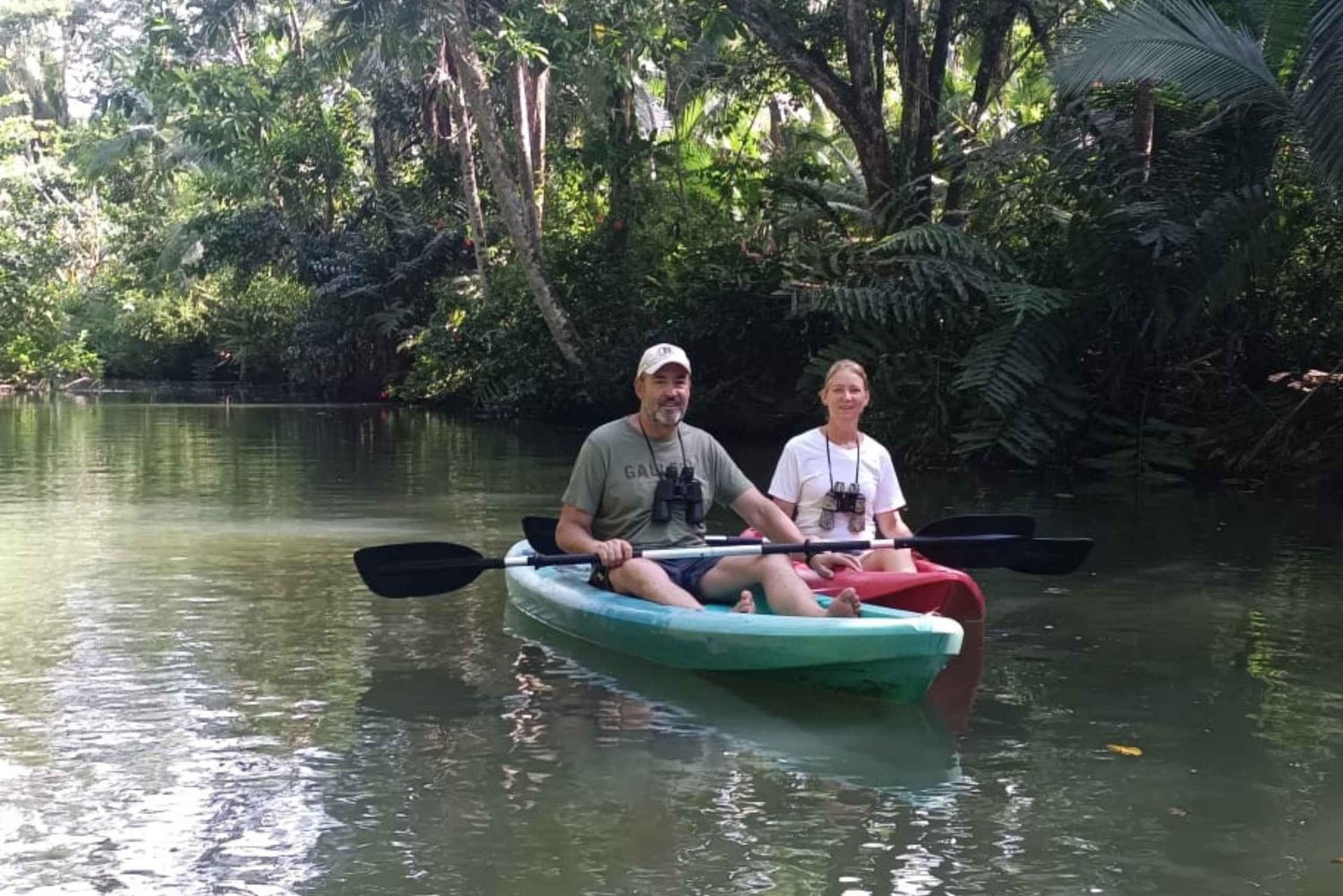 Canal de vida selvagem de caiaque em Punta Uva: uma bela experiência na natureza em Puerto Viejo, Costa Rica Explora um dos lugares mais especiais para andar de caiaque na costa caribenha da Costa Rica. Aninhado na selva de Punta Uva, este canal calmo está repleto de vida selvagem e beleza natural. Fica a poucos minutos de Puerto Viejo e fica mesmo ao lado de uma praia recentemente nomeada uma das 50 melhores praias do mundo. Este canal é conhecido por avistamentos incríveis de animais. Muitos visitantes veem os três tipos de macacos numa viagem. Podes ver macacos capuchinhos, macacos bugios e macacos-aranha a balançarem-se pelas árvores. Também podes ver preguiças, quatis, araras verdes, tucanos e o que parece ser um milhão de tartarugas a relaxar ao sol. Esta é uma verdadeira experiência da natureza da Costa Rica. ✅ O que está incluído Experiência de caiaque autoguiada de duas horas *ou 20 $ extra para um guia* Caiaques individuais ou duplos pelo mesmo preço Coletes salva-vidas fornecidos Estacionamento perto da água Animais que podes ver ✔️ Macacos capuchinhos ✔️ Macacos bugios ✔️ Macacos-aranha ✔️ Preguiças ✔️ Quati ✔️ Tartarugas por todo o lado ✔️ Araras, tucanos e outras aves A natureza aqui surpreende sempre. Este é um dos canais mais ricos em vida selvagem na área de Puerto Viejo. Queres ajuda para avistar animais? Podes adicionar um guia de vida selvagem de língua espanhola por apenas 20 $ extra! O Aron é um guia experiente e incrível a encontrar animais. Ele não fala inglês fluentemente (ainda!), mas entende muito bem o passeio e sabe exatamente onde a vida selvagem gosta de se esconder. Ele também tira ótimas fotos e adora levar os hóspedes a um belo miradouro na praia após o passeio de caiaque. Para quem é perfeito ✔️ Amantes da natureza ✔️ Casais, famílias e grupos ✔️ Viajantes que gostam de águas calmas e de um ambiente tranquilo na selva ✔️ Qualquer pessoa que visite Puerto Viejo e queira uma verdadeira experiência costa-riquenha Não é ideal para hóspedes que querem um estilo de treino rápido com remo ou barcos a motor. Preços e grupos Reserva mínima de duas pessoas Os hóspedes individuais são bem-vindos e pagam a tarifa para duas pessoas Preços mais baixos disponíveis para grupos de três ou mais Precisas de boleia para o canal? Temos opções disponíveis. Envie-nos uma mensagem para saber os preços. Relaxa numa praia de classe mundial Depois de andar de caiaque, caminha até à praia de Punta Uva, que foi recentemente nomeada uma das 50 melhores praias do mundo. A área de estacionamento serve tanto a praia como o canal. Porque é que os hóspedes adoram esta excursão Esta experiência de caiaque permite-te desfrutar de águas calmas, selva real e vida selvagem incrível numa aventura. É uma das atividades ao ar livre mais exclusivas de Puerto Viejo e uma das favoritas entre os amantes da natureza de todas as idades. Reserva já os teus caiaques e vive a magia de Punta Uva!Includes