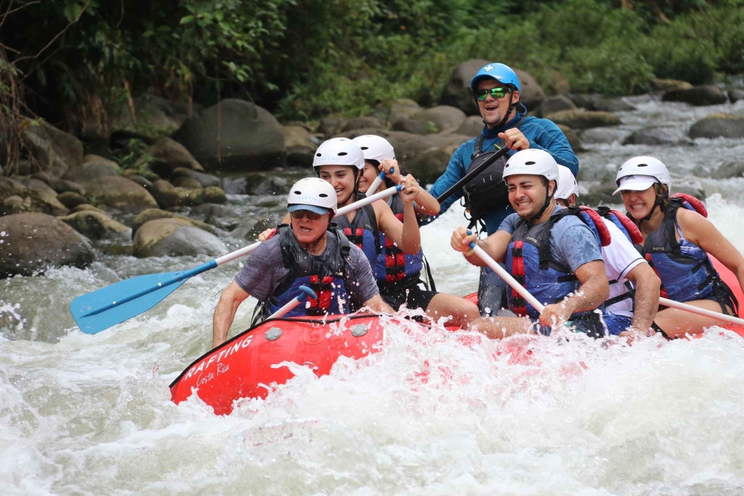 Deixa que te vão buscar ao teu hotel e segue para o rio Balsa, localizado a menos de uma hora de carro de La Fortuna. Assim que chegares, recebe um briefing de segurança abrangente dos nossos guias profissionais certificados, que são treinados em todos os protocolos de segurança e procedimentos de emergência. A tua segurança é a nossa prioridade: todos os nossos guias são totalmente certificados e equipados com amplo conhecimento de protocolos de segurança para garantir que o teu grupo esteja sempre protegido. Temos uma equipa de resgate e segurança dedicada em espera durante toda a viagem, garantindo a tua tranquilidade enquanto desfrutas da tua aventura. Navega por rápidos de classe 2/3, de nível principiante a moderado, perfeitos para quem pratica rafting pela primeira vez, dos 8 aos 108 anos. A experiência anterior de rafting é opcional e não precisas de saber nadar – os nossos guias especializados estarão contigo em cada passo do caminho. Durante a viagem pelo Balsa, faz paragens planeadas, permitindo-te mergulhar nos arredores, procurar vida selvagem, desfrutar de um mergulho refrescante e explorar o ecossistema vibrante que prospera ao longo das margens do rio. Termina a viagem com um almoço tradicional da Costa Rica antes de seres deixado no teu hotel.Includes