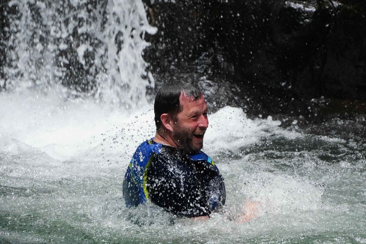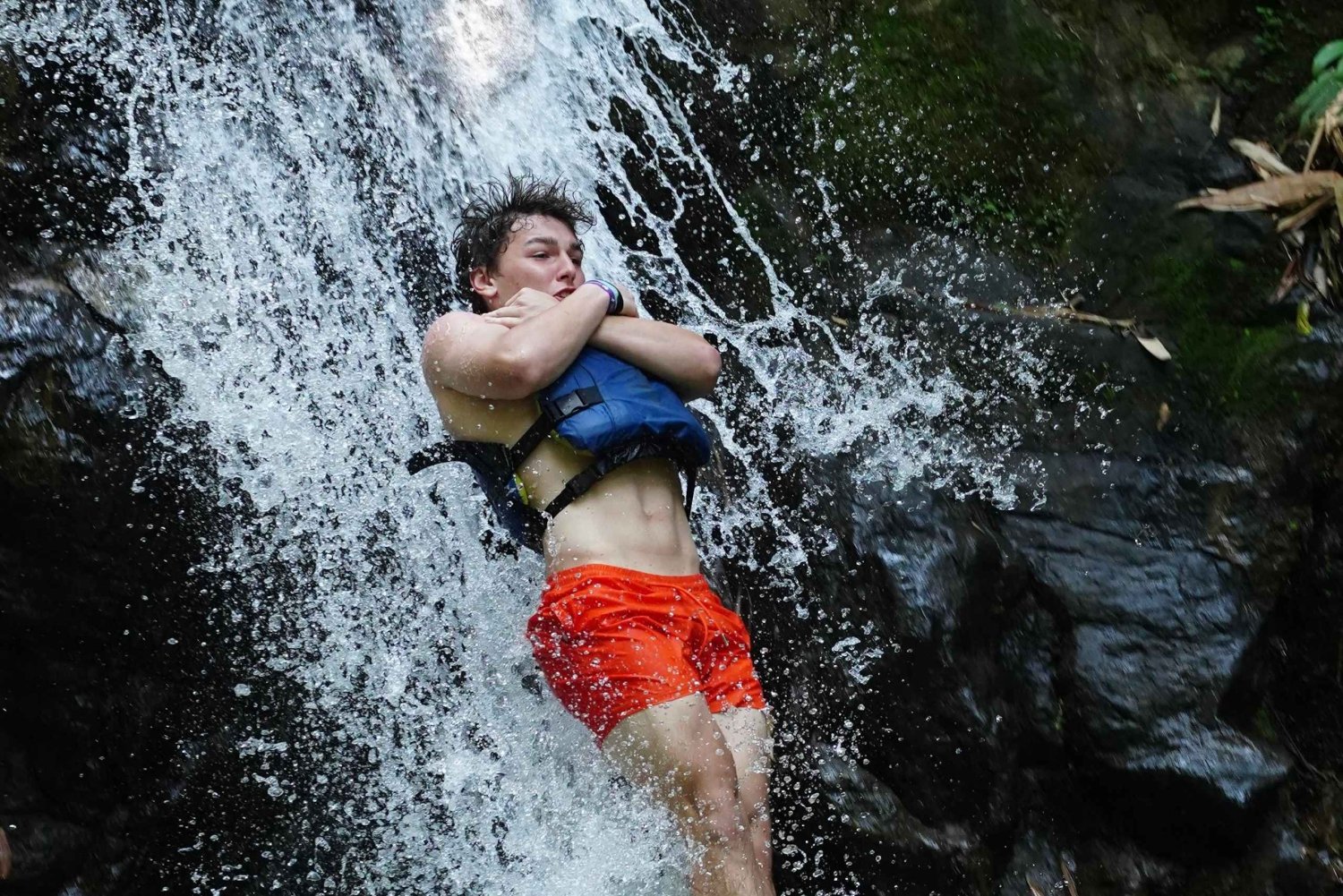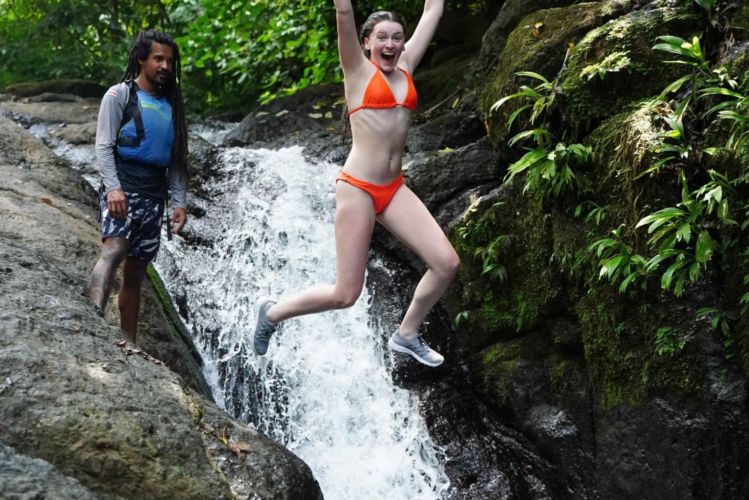 Descubra joias escondidas neste tour guiado pelo Pacífico Central. Visite cachoeiras, nade, pule de uma cachoeira, deslize por uma cachoeira natural de 6 metros e explore um sistema de cavernas vulcânicas.