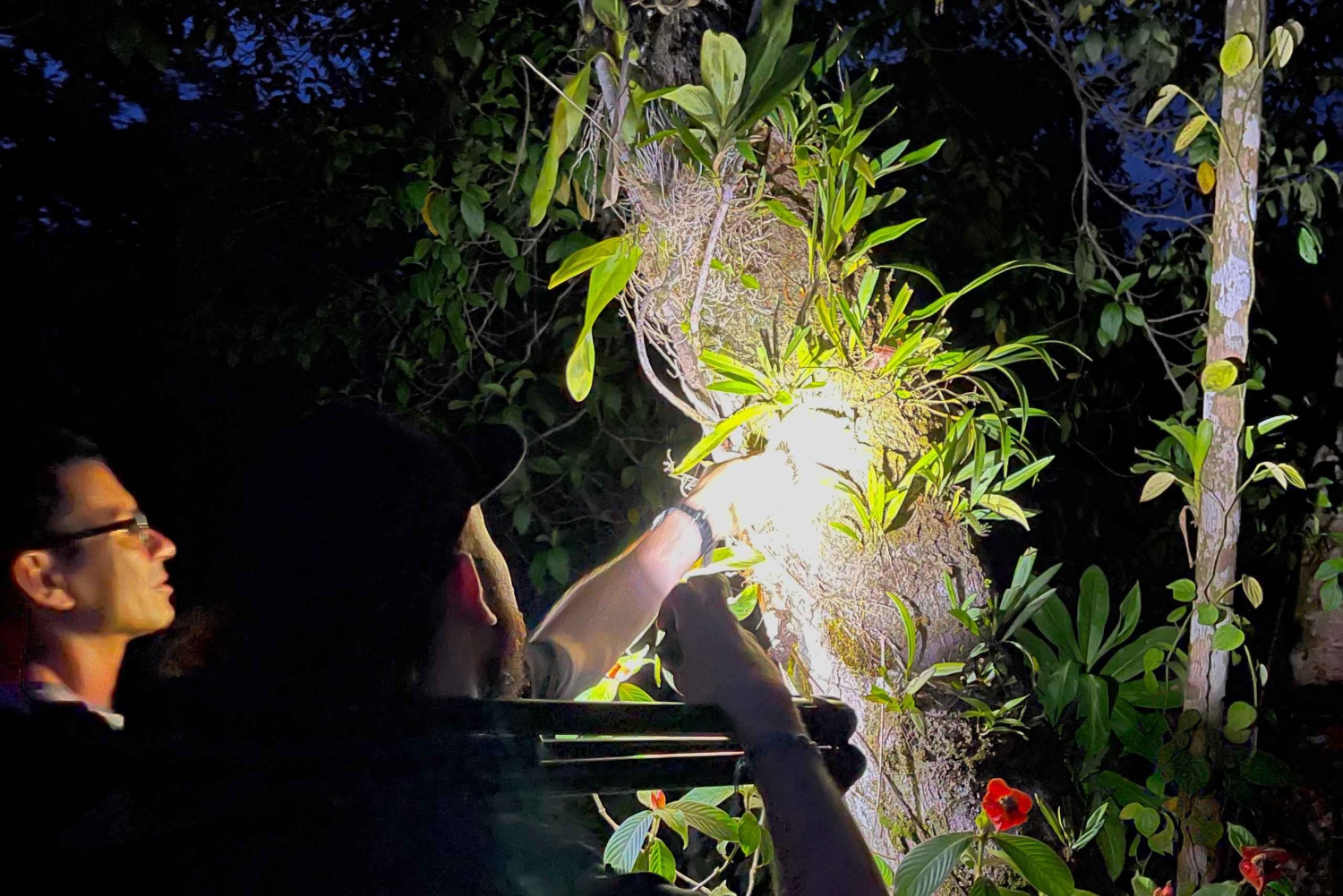 Começaremos o passeio às 17h45 na Reserva Natural Sukia, localizada em Manuel Antonio. Durante esta experiência, guiada por um naturalista experiente, caminharemos pela floresta durante aproximadamente 2,5 horas. O equipamento necessário é fornecido, incluindo lanternas e poncho de chuva. Descobriremos as maravilhas do ecossistema noturno, onde os sons e os movimentos dos animais são o centro das atenções. Veremos um ecossistema de crocodilos e jacarés, criaturas nocturnas como insectos, mamíferos, anfíbios, répteis e aves que só podem ser vistos depois de escurecer. Terminamos no mesmo ponto de partida, partilhamos as fotos criadas pelo meu equipamento ótico de alta definição instantaneamente via airdrop ou uma pasta android.Includes