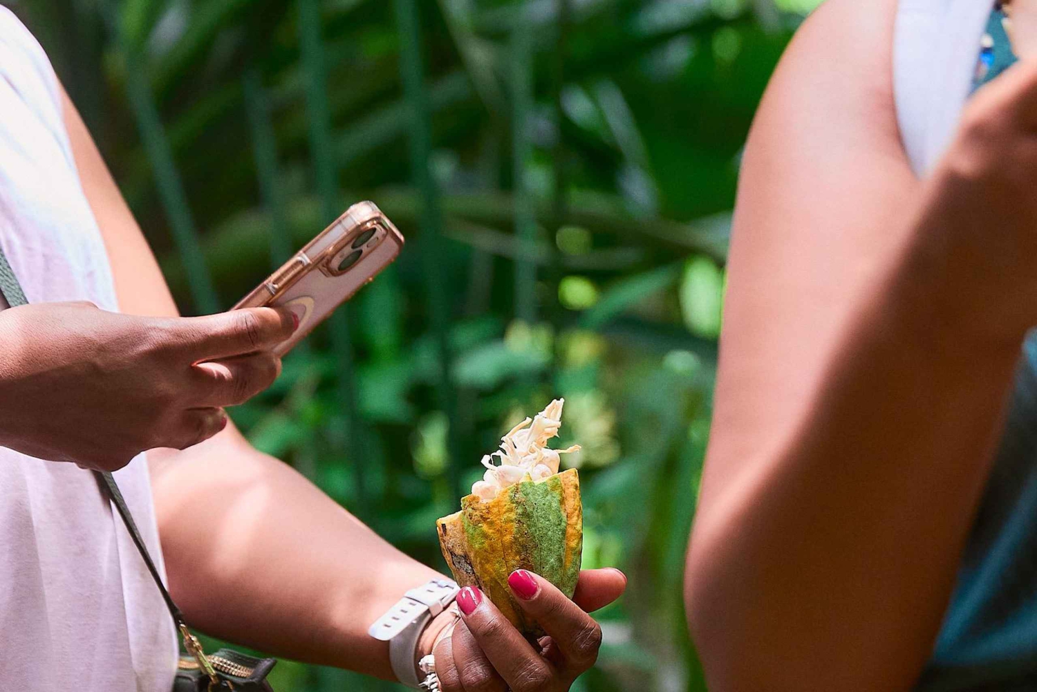 Este é um passeio único para desfrutar ao máximo da floresta tropical numa combinação do Parque Nacional Cahuita, a comunidade indígena, chocolate e cachoeiras. Tudo com transporte e almoço; Quando chegarmos ao Parque Nacional Cahuita, o nosso guia local certificado irá mostrar-te todas as belezas dentro do parque. Caminharemos por aproximadamente 2 horas em busca de animais selvagens usando um telescópio de alta definição para observar detalhes dos animais e tirar fotos, é perfeito para poder apreciar muito bem aqueles animais que se escondem a vários metros da trilha. Uma vez terminado este tempo, vamos para a comunidade Bribri para compartilhar a experiência de fazer chocolate 100% orgânico de forma tradicional, também vamos explorar o maravilhoso jardim de plantas medicinais e aprender sobre o pequeno projeto de criação de sapos venenosos e sapos noturnos de olhos vermelhos ... tudo isso faremos junto com uma família local do grupo indígena Bribri, onde eles também compartilharão conosco um delicioso almoço típico indígena enquanto aprendemos sobre sua história, modo de vida e idioma. Finalmente vamos para a cachoeira onde caminharemos por aproximadamente 10 minutos até chegarmos à cachoeira onde poderás desfrutar de um mergulho refrescante na grande piscina natural formada pela impressionante queda d'água de 15 metros da cachoeira.Includes