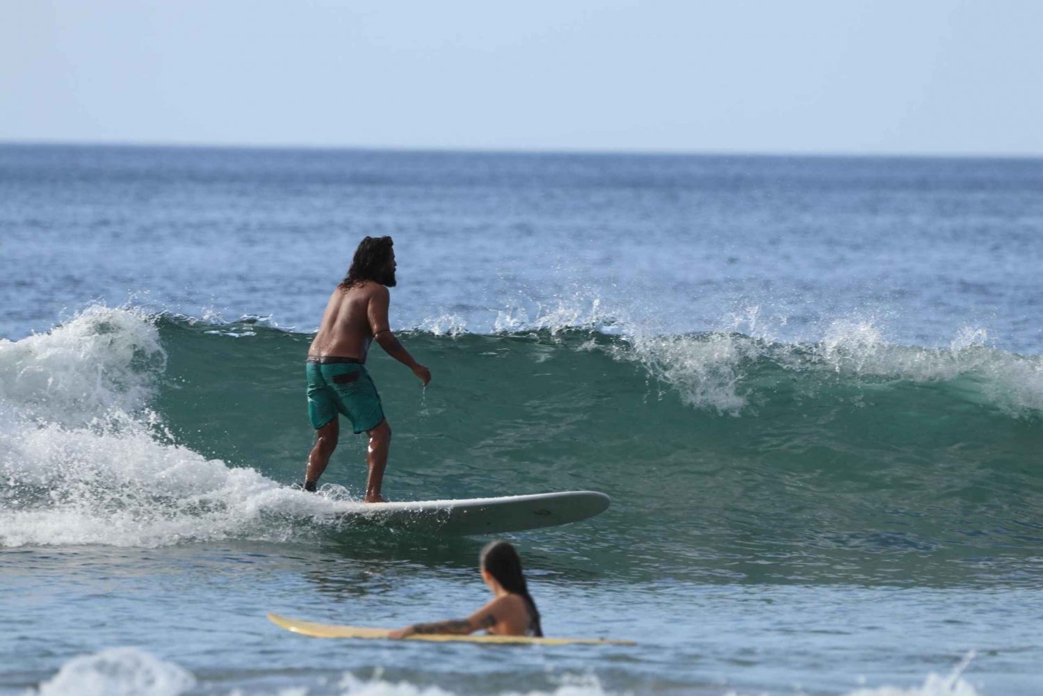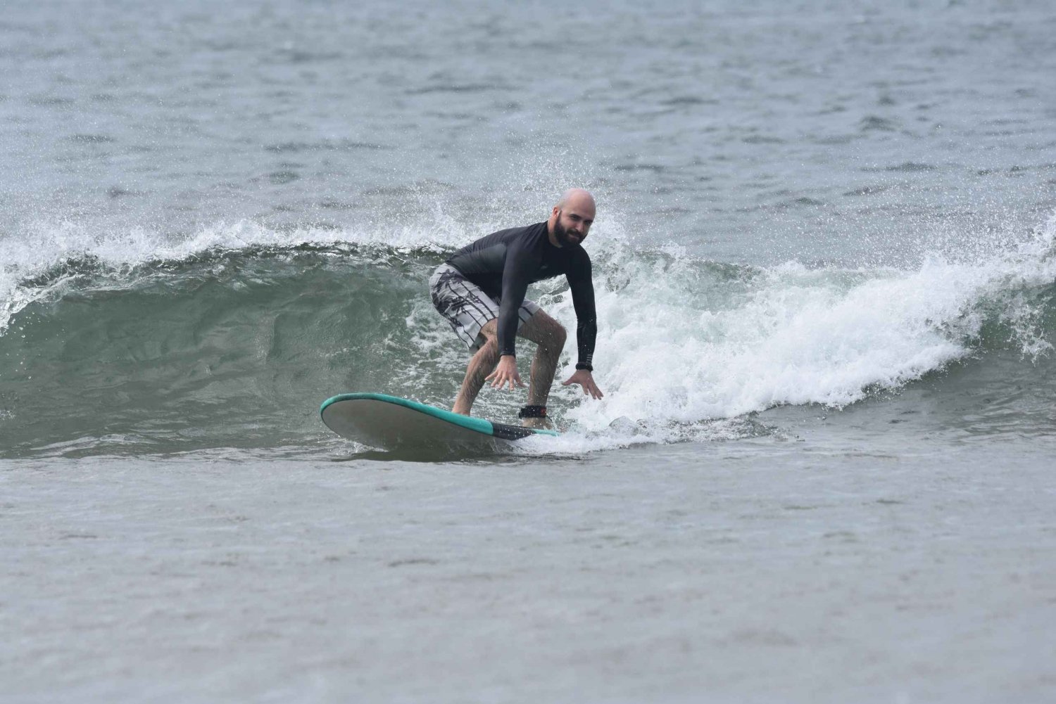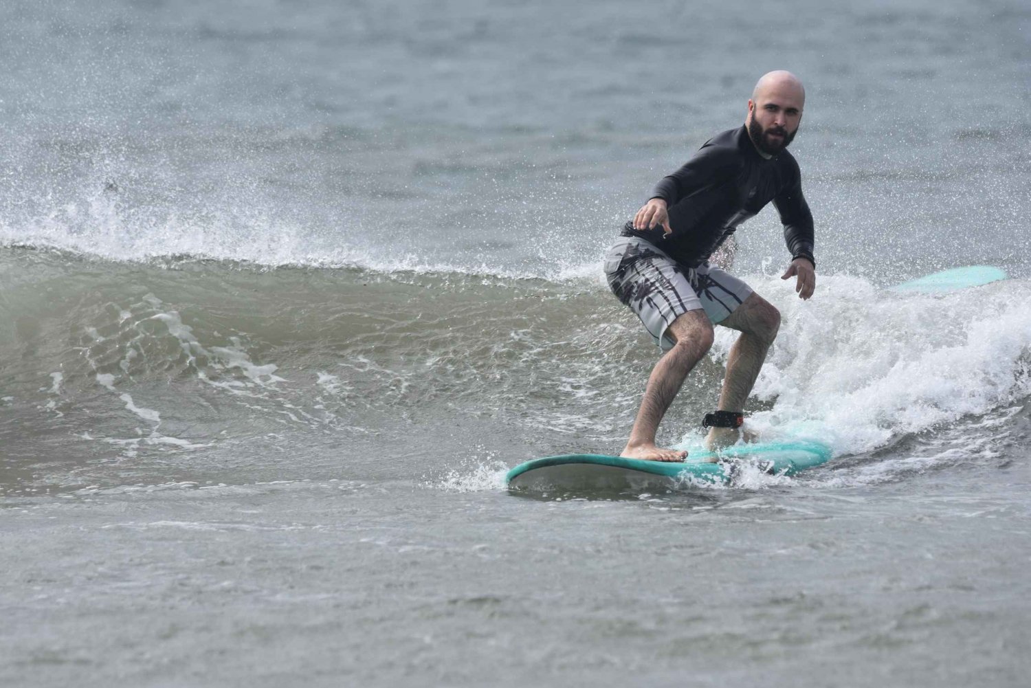 Prancha de surfe para iniciantes. Leash. Rashguard. Água engarrafada ou água de coco. Instrutor local.Easy cancellation