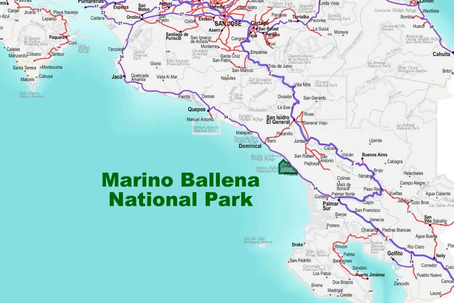- Parque Nacional Marino Ballena e Cachoeira Uvita