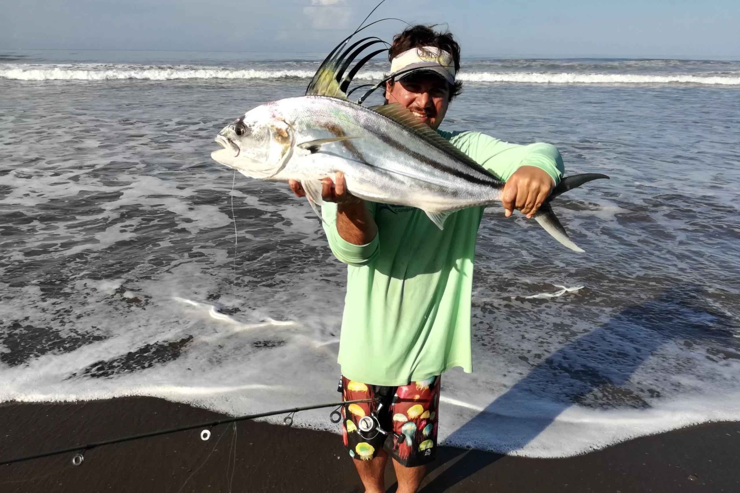 Åk till Playa Mantas, en vacker, lugn och platt vik bara 25 minuter norr om Jaco Beach. Njut av en dag med kustfiske, där du kan fånga en mängd olika arter precis utanför kusten och revet. Förvänta dig att fånga roosterfish, snook, jack, snapper och till och med makrill och barracuda. Området är känt för sina möjligheter till kustfiske, med klippiga uddar, rev och flodmynningar som erbjuder utmärkta livsmiljöer. Du kan också stöta på arter som mahi-mahi (dorado) och tripletail, särskilt runt flytande skräp. Njut av den fantastiska utsikten över den vita sandstranden och den tropiska bakgrunden. Håll utkik efter apor, sengångare och vilda scarlet macaws under din tur. Efter fisket kan du få din fångst rengjord så att du kan ta med den hem och laga. Alternativt kan du mot en extra avgift grilla på stranden eller förvandla din fångst till ceviche direkt på plats.Includes