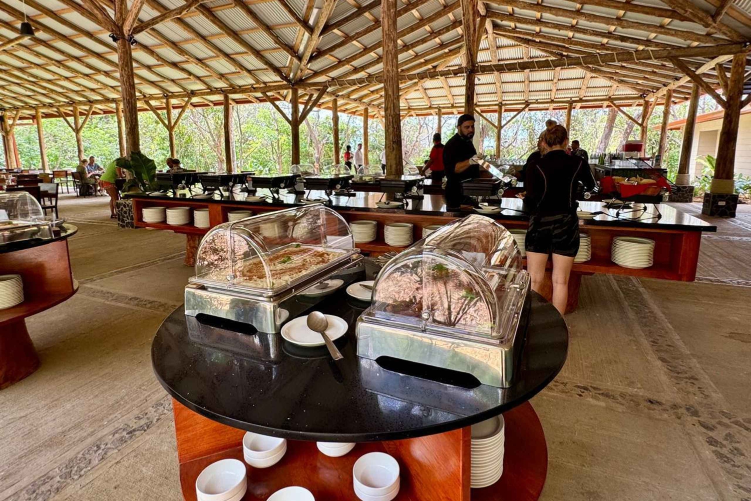 Upplev Costa Ricas naturliga skönhet på en endags naturtur i Rincon de la Vieja National Park. Vandra Las Pailas Trail i parken för att upptäcka den råa naturen och det fantastiska djurlivet. Med en tvåspråkig naturguide går du den 3,5 kilometer långa, cirkulära stigen genom den tropiska skogen för att njuta av den bästa utsikten över vulkanen. Gå till mirador för att se vulkanerna Rincón de la Vieja och Santa María och vidare till Stilla havet. Vandra till ett fantastiskt vattenfall som faller ner i en vacker himmelsblå pool. Stanna till här för ett svalkande dopp eller för att njuta av den vackra omgivningen. Efteråt kan du föryngra dig själv i Rio Negros varma källor och gyttjebad. Smörj in din hud med uppvärmd vulkanisk lera och tvätta sedan av den i den kalla floden innan du hoppar tillbaka i de varma poolerna. Avsluta turen med en utsökt buffélunch på La Hacienda Restaurant.Includes
