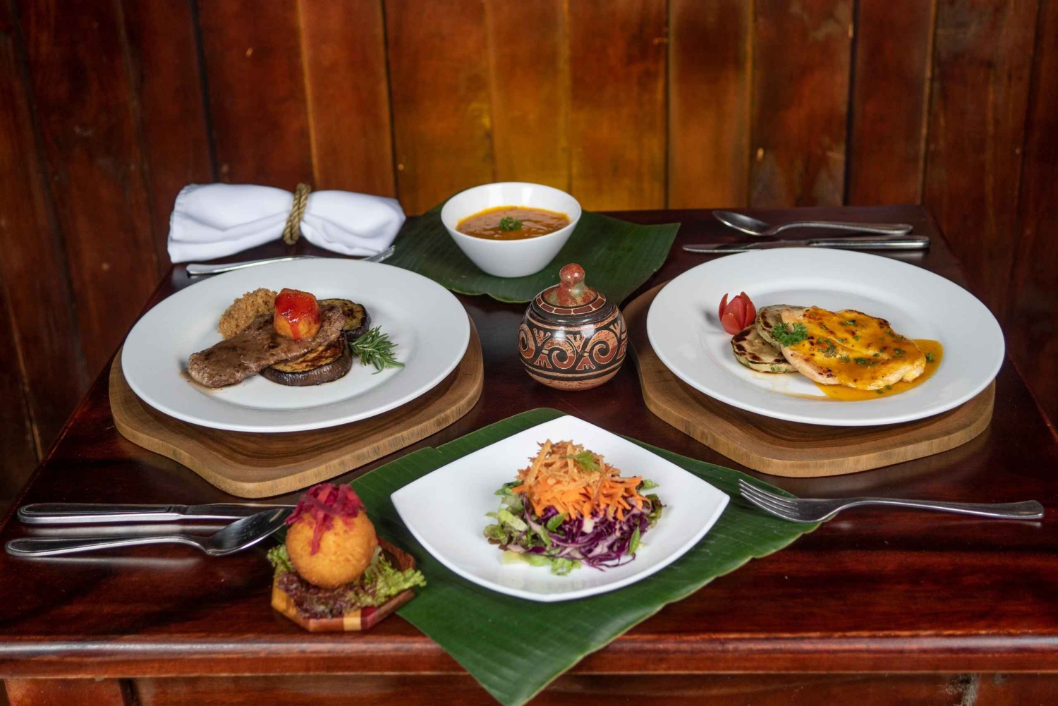 Vandring i regnskogen Ridning på hästryggen Zip-line i trädkronorna Hängande broar Jungle vattenrutschbana Salitral vattenfall 5-rätters gourmetlunch. Genom en utsökt kulinarisk upplevelse av hållbar gastronomi, från natur till bord. Kulturell upplevelse: Kulturell rundtur; besök hos Trapiche, provsmakning av traditionella snacks på La Fonda, Güipipia Gourmet Coffee och keramikverkstad för ursprungsbefolkningen Guaitil Termiska vatten Bad i vulkanisk lera Naturlig bastu TraktoråkningImportant Information