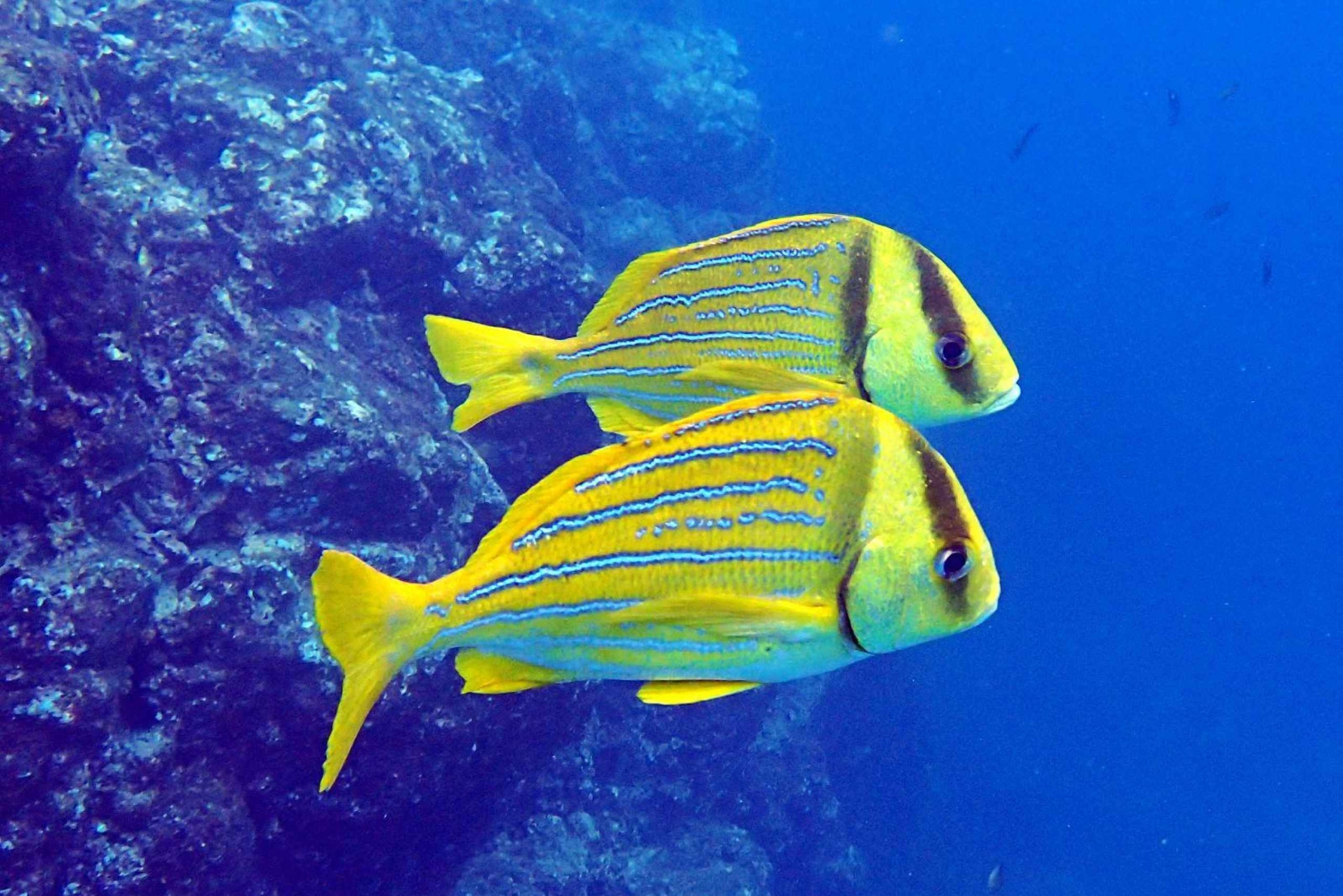 Ge dig ut på ett oförglömligt snorklingsäventyr från Tamarindo till de fantastiska Catalinaöarna. Börja din resa på vårt dykcenter kl. 06:40, där du kommer att få snorklingsutrustning och information om grundläggande snorkling och säkerhetsprocedurer. En kort åktur med båt tar dig till ett större fartyg för en 45-minuters resa till Catalinaöarna, eller Cabo Velas om det blåser mycket. När du väl är på snorklingsplatsen simmar du ut i kristallklart vatten för två guidade snorklingssessioner. Förundras över det livliga marina livet, inklusive blåsfiskar, stora stim av snapparfiskar och havssköldpaddor. Mellan sessionerna kan du koppla av ombord och njuta av tropiska frukter medan du njuter av den fantastiska havsutsikten. Din professionella guide kommer att vara med dig under hela upplevelsen, för att säkerställa din säkerhet och förbättra din utforskning under vattnet. Turen avslutas runt middagstid, med en tur och retur-resa till Tamarindo, vilket ger dig gott om tid att njuta av resten av din dag.Includes