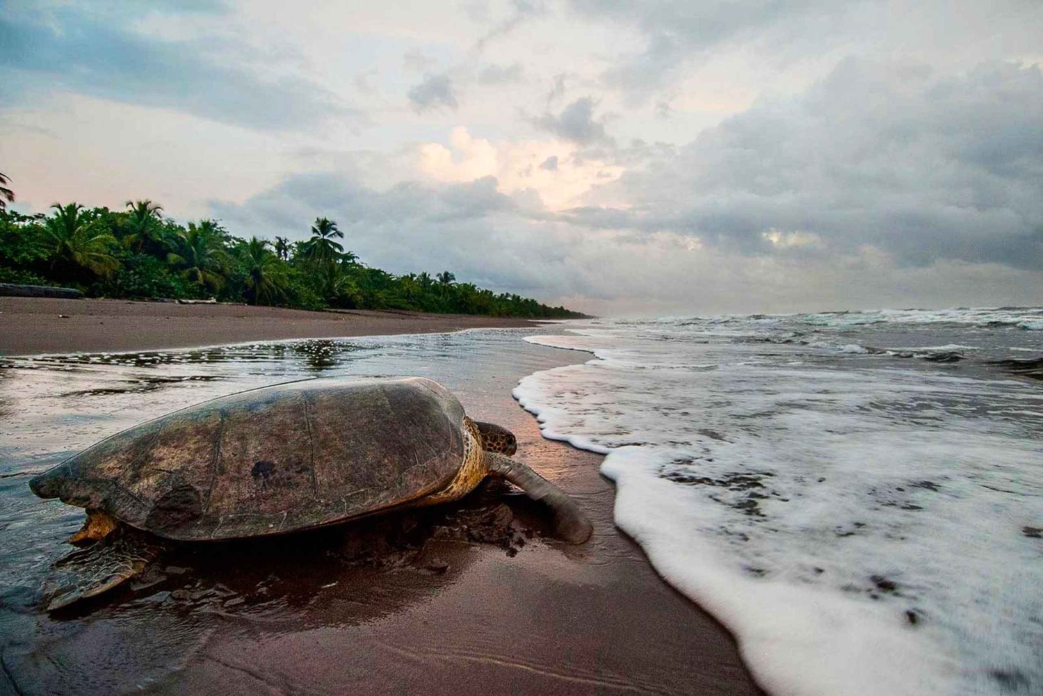 Beundra ansträngningarna hos en av de längst levande arterna på planeten för att säkerställa sin överlevnad. Observera havssköldpaddornas häckningsprocess på en kvällstur i Tortuguero, tillsammans med en lokal guide som förklarar processen. Möt din guide och bege dig till mötesplatsen vid skyddet i djungeln (nära stranden) och träffa sedan spanarna. Efter att spanarna har gett tillstånd beger vi oss till stranden för att se havssköldpaddorna lägga sina ägg, komprimera äggen, kamouflera boet eller se en sköldpadda återvända till havet. Lär dig mer om vad som händer i havssköldpaddornas värld under deras häckningssäsong från 1 juli till 31 oktober. Observera att det är möjligt att vi inte får se någon sköldpadda. Du får observera 4 av de 7 processer som sköldpaddan genomgår när den lägger ägg på stranden. Dessa 4 processer är: 1-Äggläggning. 2- Komprimering av äggen. 3- Kamouflage av boet. 4- Sköldpaddans återkomst till havet. Vi kan naturligtvis inte lova att du kommer att få se hela processen, eftersom det beror på sköldpaddan och hur hon mår. För att kunna observera en havssköldpadda som lägger ägg måste hon vara avslappnad och ha anlänt ungefär en timme tidigare, vilket är den tid det tar för en sköldpadda att börja lägga ägg och den idealiska tiden för att komma nära henne och njuta av denna unika händelse.I år har nationalparken genomfört betydande förändringar i det system som används för att tilldela tider, vilket tyvärr gör det svårt för oss att ange eller ändra turens tid direkt via GetYourGuide-plattformen. Så här fungerar det nu: Guiderna måste betala parkens inträdesavgift (ingår i turpriset – 7 dollar per person) mellan kl. 13.00 och 17.00. Kl. 17.00 håller parken ett lotteri för att tilldela guiderna strandområden och tidsluckor. Dessa tilldelningar sköts helt av parken, vilket innebär att vi inte har möjlighet att välja den exakta tiden. Vi kommer dock att hålla tummarna och göra allt vi kan för att följa schemat så nära dina förväntningar som möjligt. Det finns två möjliga tider för turen: * **20:00 – Samling: 19:15** * **22:00 – Samling: 21:15** I början av säsongen kan det vara sällsynt att man ser sköldpaddor, och det finns till och med en risk att inga sköldpaddor dyker upp. Därför ökar chansen att se en havssköldpadda med den andra tidsluckan (22:00). Om du är bekväm med att fortsätta med bokningen under dessa villkor – med vetskap om att vi inte kan garantera en specifik tid och att den senare tidsluckan kan förbättra dina chanser – ber vi dig vänligen bekräfta ditt godkännande antingen via denna kanal eller via WhatsApp. Du kommer att få en slutgiltig bekräftelse av din tur via e-post eller WhatsApp från kl. 18.00 och framåt. Vad ingår? Lokal guide Förklaring av häckningsprocessen Entréavgift 7 $ Vad ingår inte? Gummistövlar (vid behov) Poncho (vid behov) Myggmedel (vid behov) Transport från resorten till vår mötesplats och/eller tillbaka (vid behov)Includes